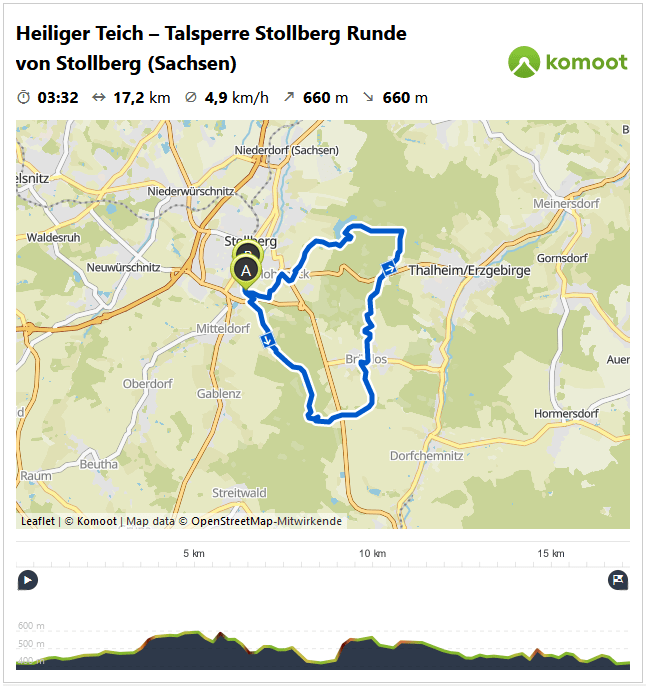 Kurz nach Weihnachten ging es auf einer gut 17 Kilometer langen Tour von Stollberg über Brünlos bis zur Talsperre Stollberg. Immerhin 660 Höhenmeter auf und ab.