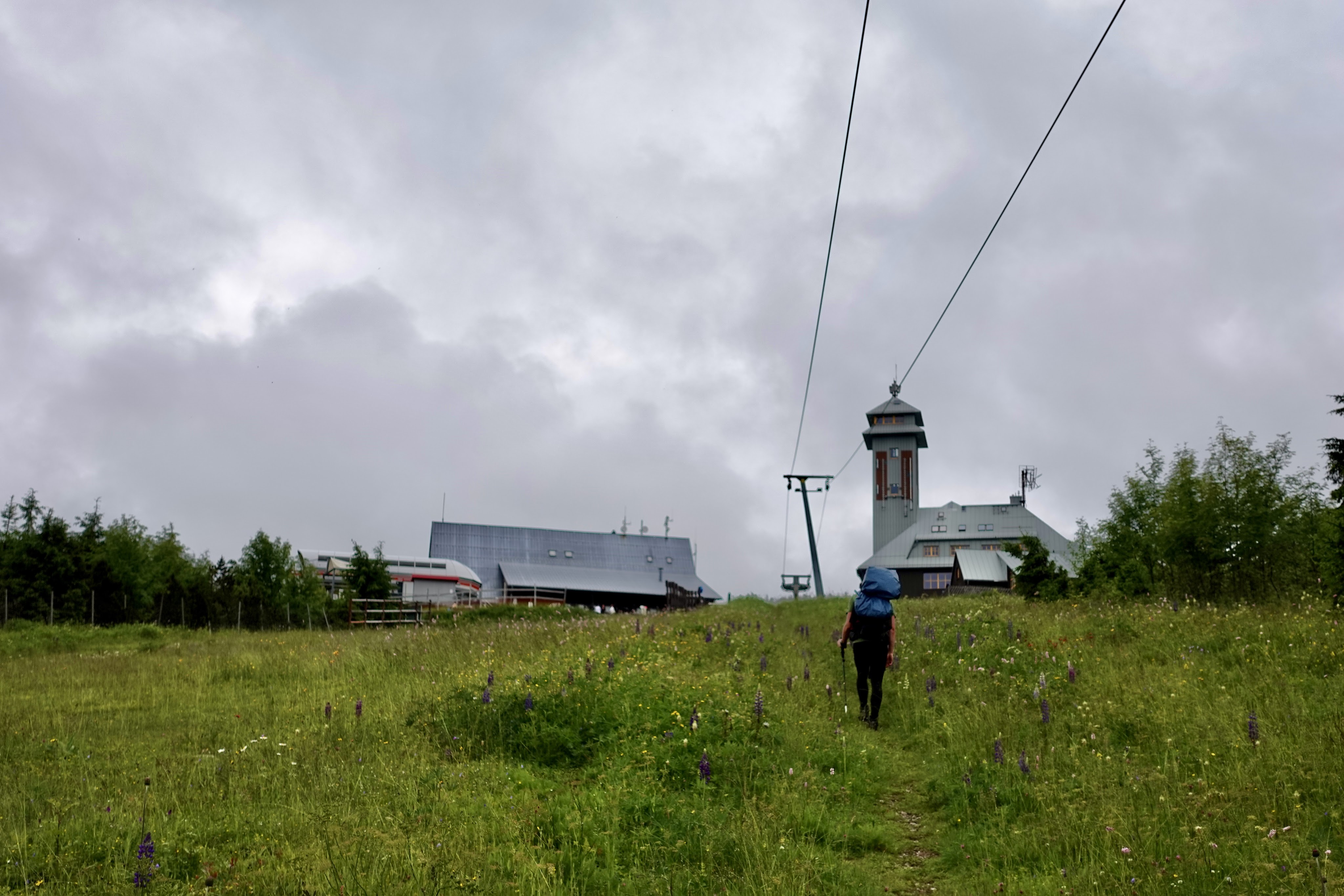 Dort wartete ein kleiner alpiner Vorgeschmack auf uns. Jeden Winter werden auf der Himmelsleiter hunderte von Skifahrern per Schlepplift hochgezogen. Im Sommer ist der Hang hingegen verlassen und so waren wir die Einzigen, die an diesem Tag den steilen aber direkten Aufstieg genommen haben, um den Gipfel zu erreichen. Oben angekommen wartete einer der schönsten Ausblicke über das Erzgebirge und ein Eis im Bergrestaurant auf uns.