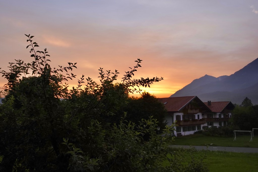 Gegen 16.15 Uhr erreichen wir das Hallerangerhaus. Die Hütte ist gepflegt, Türen, WC, Duschen – alles wurde erst vor kurzem renoviert. Heute teilen wir uns ein Mehrbettzimmer mit dem Pärchen im mittleren Alter, Heike und Lars, deren Ziel ebenfalls Venedig ist. Zuletzt hatten wir sie in Vorderriß gesehen. Wir packen gerade noch unsere Rucksäcke aus, als draußen vor dem Fenster sprichwörtlich die Welt untergeht.