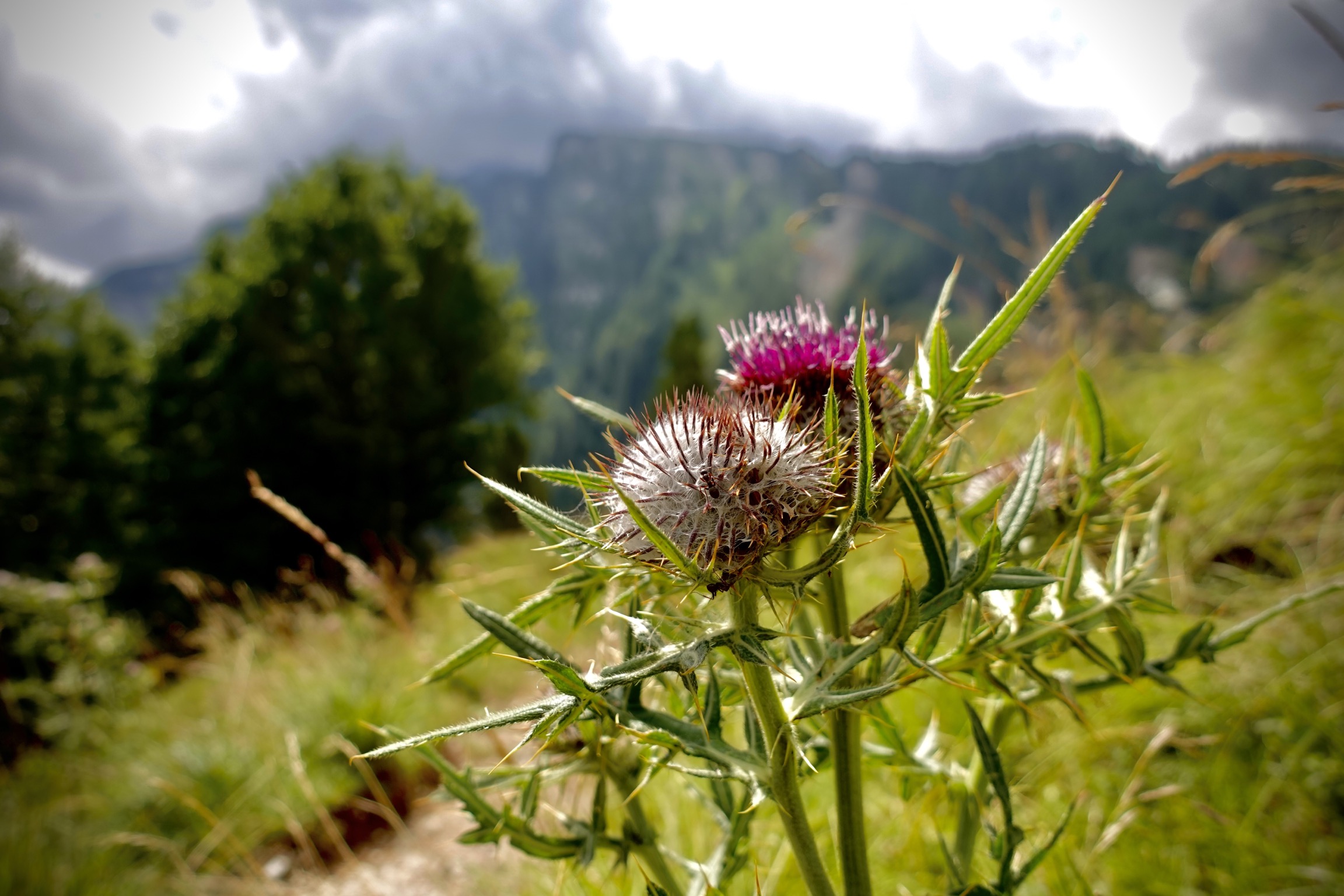 Danach beginnt der Aufstieg auf die Forcella di Citta. Es ist einer der wenigen Tage, an dem wir bereits morgens mit Sonnenschein aufbrechen. Doch je höher wir kommen, desto stärker drücken die Wolken gegen die Berge. Bald schon ist das Rifugio Pramperet in der Wolkensuppe verschwunden. Die Sonne kommt erst wieder als wir auf der Portela del Piazedel ankommen und das gegenüberliegende Tal blicken können. Noch einmal wird mir bewusst, dass es die letzten Augenblicke in den Alpen sein werden – die letzten Ausblicke dieser Art. Wieder wächst der Klumpen im Hals. Mehrfach halte ich kurz an, um die Momente im wahrsten Sinne des Wortes zu inhalieren.