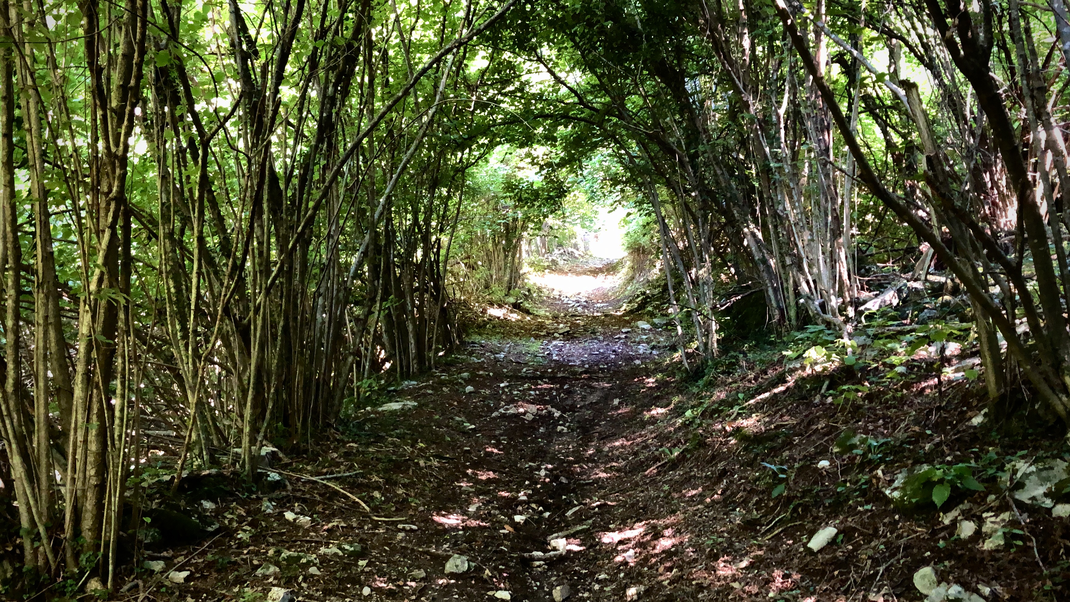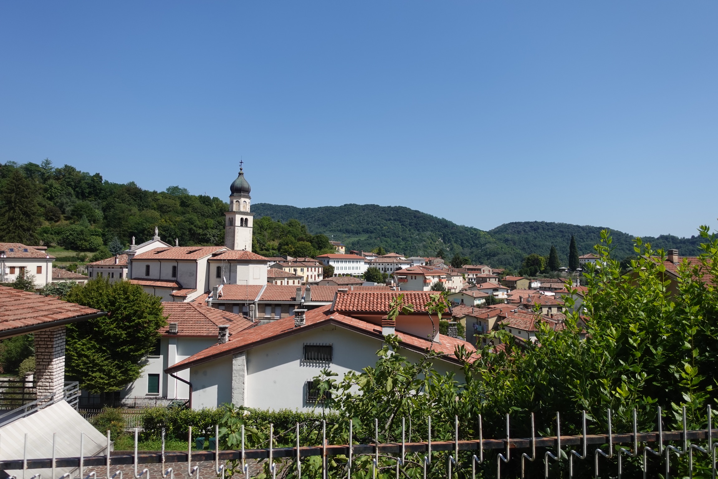 Die Stimmung ist im Keller. Sebastian zweifelt an dem Plan bis Venedig zu laufen. Er will wenigstens die direkte Route in die Lagune statt ans Meer wählen. Die Unterkünfte sind allerdings seit Tagen gebucht und noch habe ich fest vor, die klassische Tour zu schaffen. Neben der Hitze liegt nun auch deutliche Spannung in der Luft, als wir in Tarzo aufbrechen, um die letzten Kilometer bis Arfanta zu gehen. Zu allem Überfluss endet der eingezeichnete Weg schließlich noch mitten im Gestrüpp und wir müssen ein ganzes Stück zurücklaufen.
