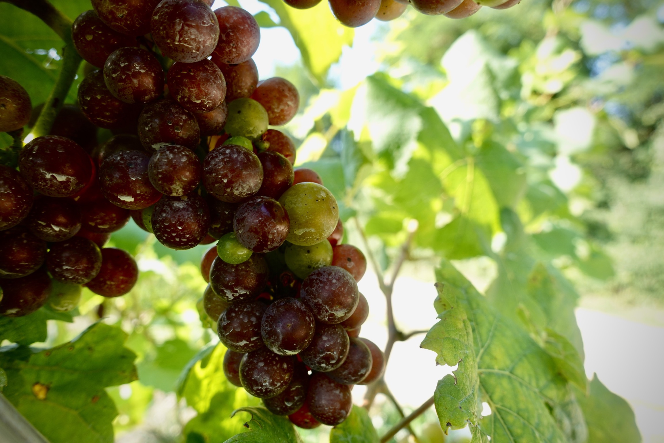 Baustellen versperren den Uferweg. Wir setzen uns aber über die Warnschilder hinweg, sonst müssten wir enorme Umwege in Kauf nehmen. Nach kurzer Zeit erreichen wir einen Feldweg, der entlang von Weinreben dicht neben der Bahnstrecke führt. Das GPS navigiert uns durch hohes Gras, wo vor langer Zeit tatsächlich einmal ein Weg gewesen sein könnte. Nach einigen hundert Metern finden wir uns mitten auf einem Bauerngut wieder.