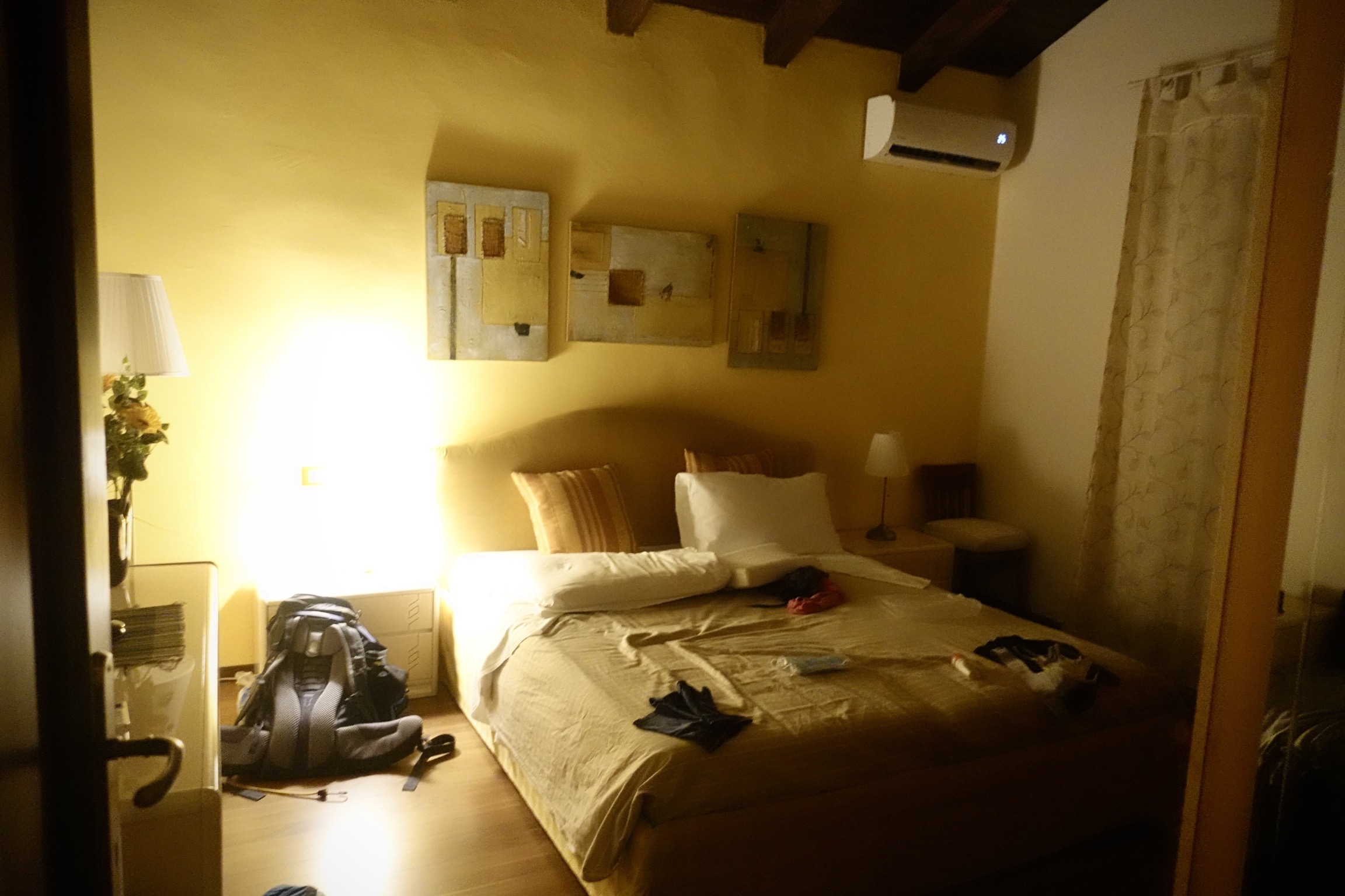 Unser Zimmer sei noch nicht bezugsfertig, meint er. „Where is your car?“, will er wissen. So schweißnass wie wir sind, wundere ich mich über seine Frage, antworte aber, dass wir zu Fuß von Ponte della Priùla bis hierher gelaufen sind. Der alte Herr streckt seinen gekrümmten Rücken durch, schlägt die Füße zusammen und salutiert uns. Sebastian erklärt, dass wir vor fast vier Wochen in München losgelaufen sind und übermorgen Venedig erreichen wollen. Erneut schlägt der Mann die Hacken zusammen, streckt sich und salutiert. Es ist ein Schauspiel.
