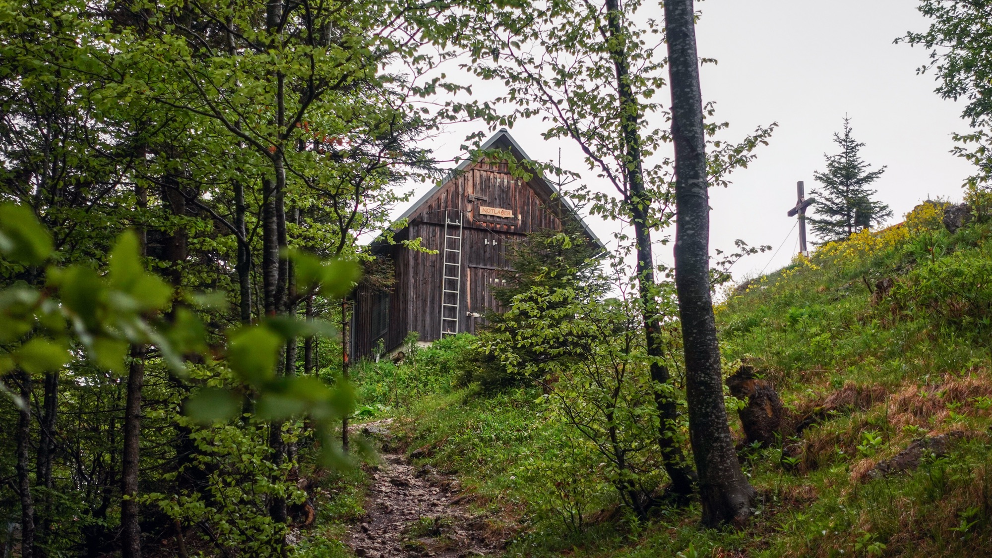Weder die Gauermannhütte noch das Öhlerschutzhaus haben jetzt unter der Woche geöffnet. An diesem Tag treffe ich exakt drei Wanderer – alle samt Frauen. Ansonsten bleibe ich mit mir und meinen Gedanken allein. Ein bisschen einsam fühlt es sich an. Podcasts und Musik helfen mir, um bei diesem regnerisch-stürmischen Wetter die trüben Gedanken nicht allzu groß werden zu lassen. Sonst höre ich beim Wandern unheimlich gern True Crime Stories – vor allem den Podcast „Mordlust“. Aktuell geht das absolut gar nicht, ebenso wenig melancholische Musik.