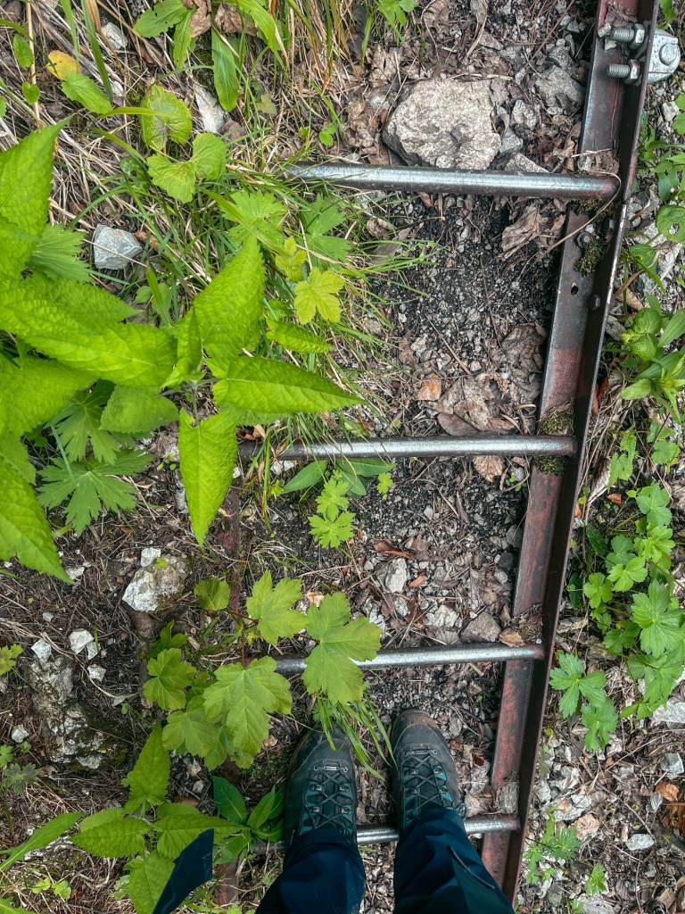 Nur am Anfang soll es Leitern geben, die später zu einem normalen Weg werden. Doch nach meinem Empfinden werden die Leitern immer länger und wollen kein Ende nehmen. Endlich nach zwei Stunden bin ich wieder auf normalen Wanderwegen, wenn auch noch immer steil aufwärts. In der Sonne mache ich Rast und esse mein geschmiertes Brötchen. Ein breites Lächeln breitet sich auf meinem Gesicht aus, dass ich diese erste schwierige Stelle gemeistert habe.