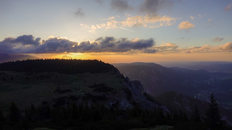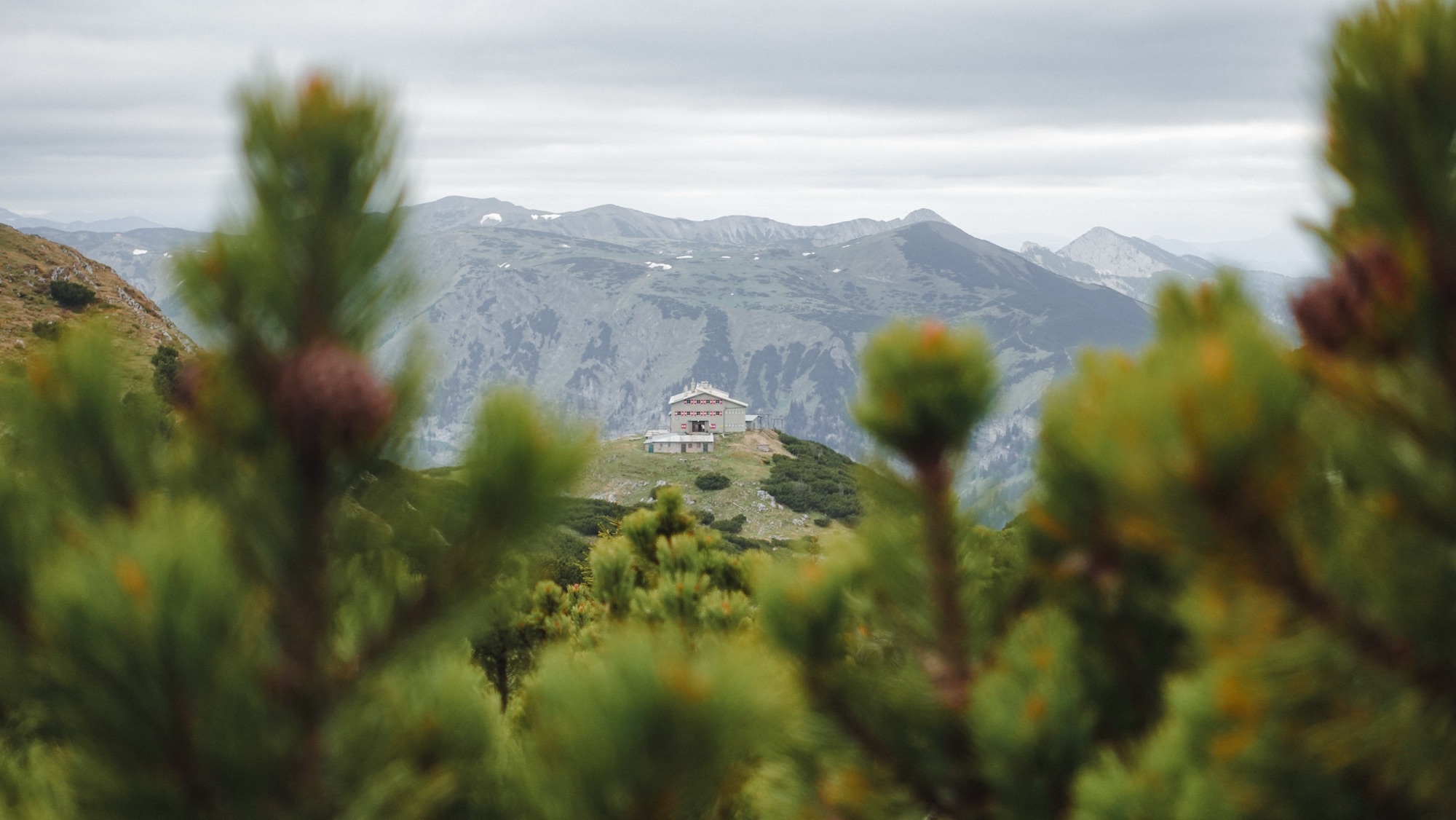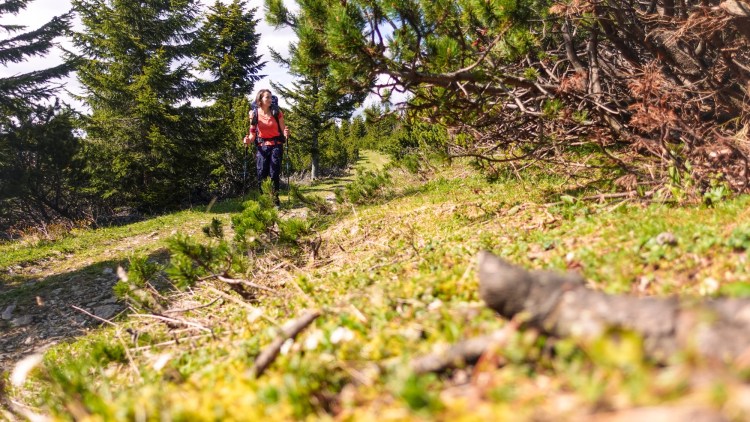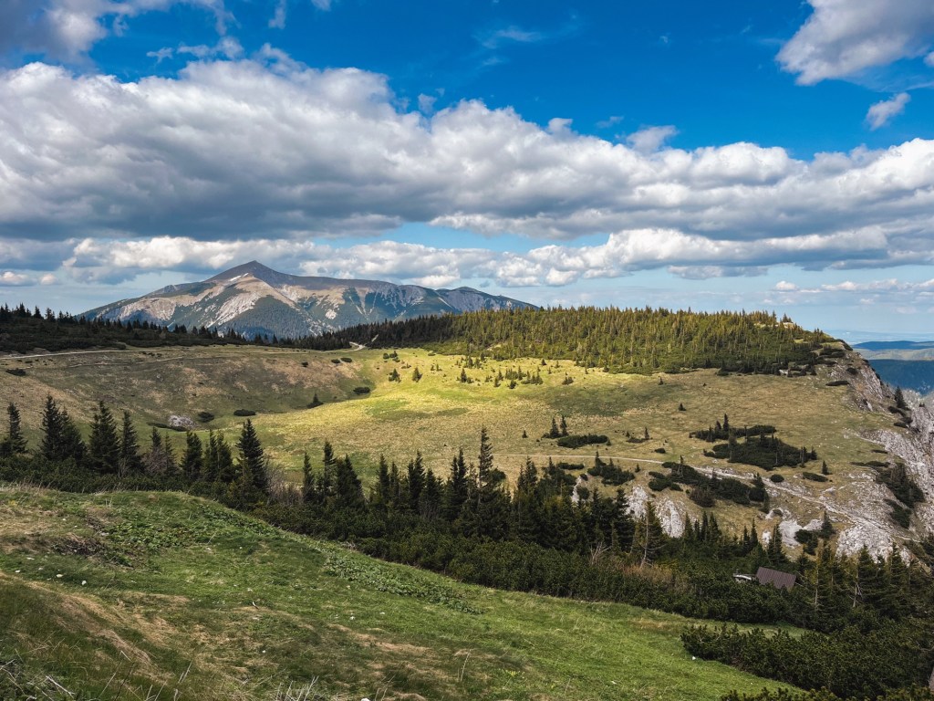 Auf einer Lichtung drehe ich mich um und sehe die Fischerhütte oben auf dem Schneeberg thronen. Drei Tage bin ich diesem Gipfel, mit 2.076m der höchste in Niederösterreich, entgegengegangen. Jetzt liegt er bereits hinter mir. Die letzten Höhenmeter sind zäh. Der Aufstieg hat mich so viel Kraft gekostet, dass ich immer wieder kurz pausieren muss.