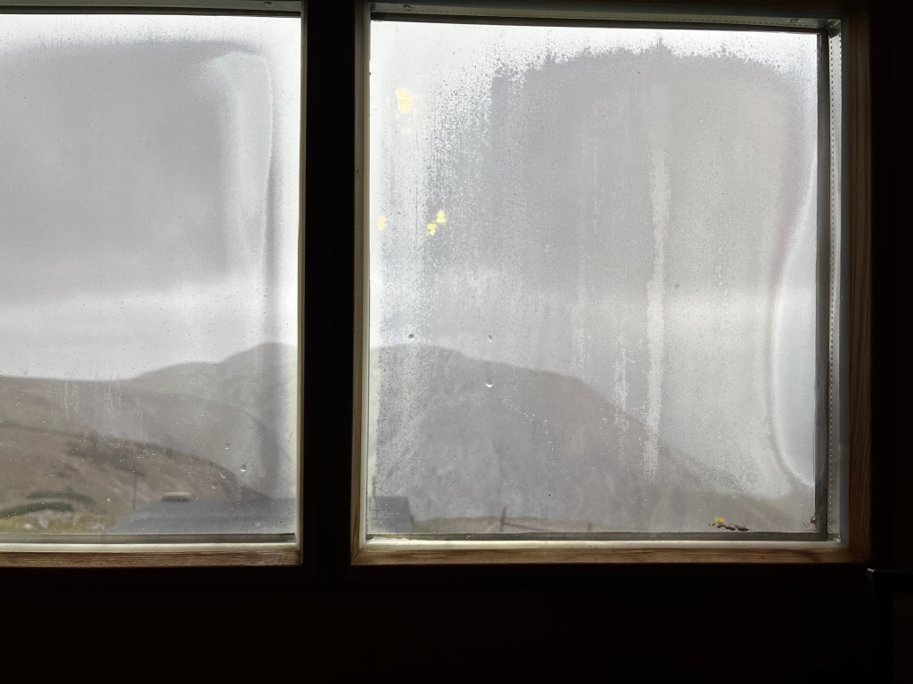 Trotz Schlummertrunk schlafe ich in dieser Nacht kaum. Das Matratzenlager befindet sich direkt unter dem Metalldach und draußen stürmt es noch immer. Schallend peitscht der Wind gegen die Hütte. Das Gebälk quietscht. Zeitweise klingt es so, als würden die Platten regelrecht davonfliegen.