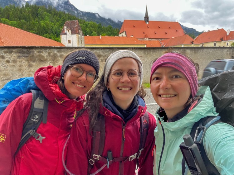 Vor der Hütte weht es uns fast davon. Doch innerhalb von zwei Stunden erreichen wir auf direktem Weg die kleine Stadt. An der Bushaltestelle verabschiede ich mich noch von Deborah und Emilia. „Lass uns noch gemeinsam für deine Reise beten,“ schlägt Emilia vor. Obwohl ich gar nicht religiös bin, weiß ich diese Geste sehr zu schätzen und willige ein. Kurz halten wir inne, während Emilia ein paar liebe Worte findet. Dann kommt der Bus und die beiden fahren wieder zurück nach Wien. Triefnass laufe ich hingegen zum Gasthof Schäffer im Ort mit ein paar Freudentränen in den Augen aus Dankbarkeit für diese schöne Begegnung.