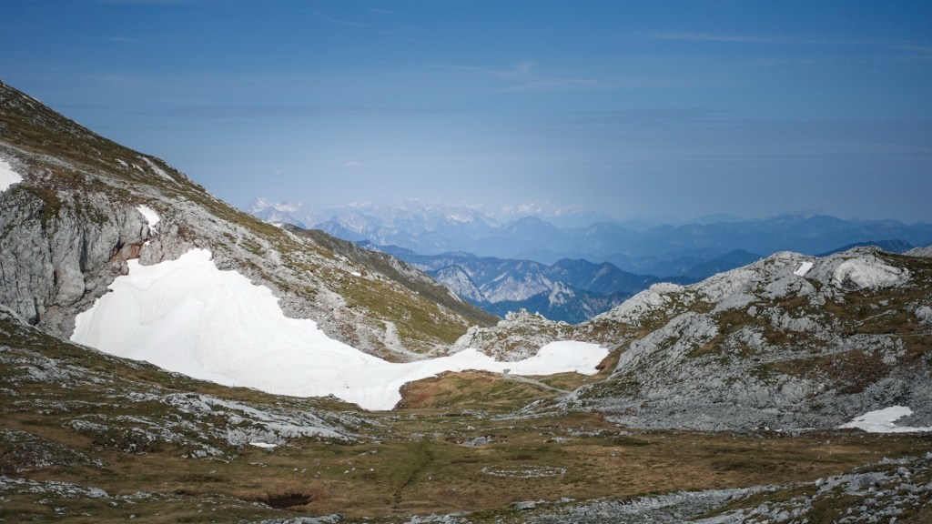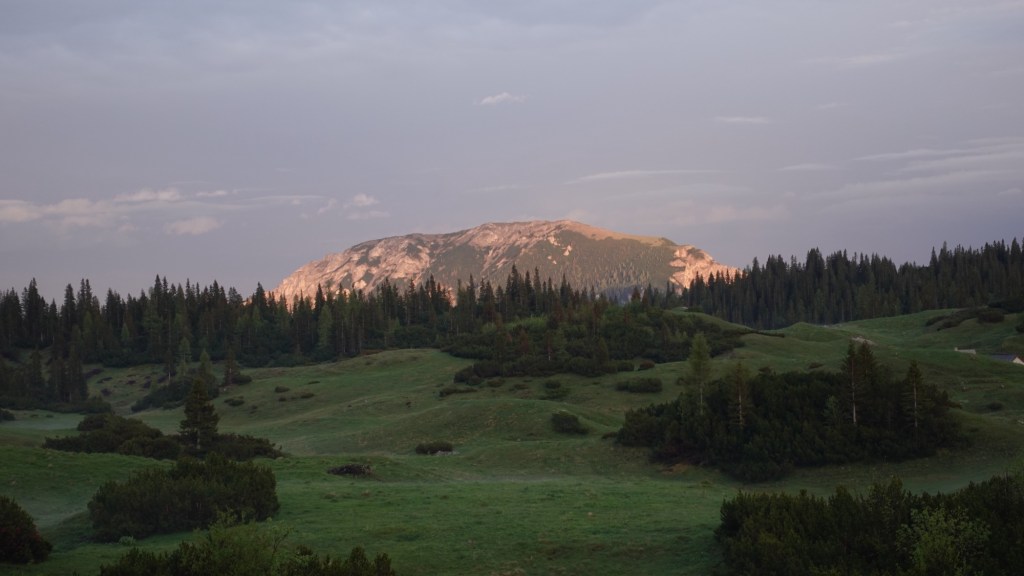 Nach einem soliden Frühstück brechen Étienne und ich um 8:30 Uhr am nächsten Morgen auf. Doch schon wenige Meter nach der Hütte trennen sich unsere Wege – endgültig. Er möchte unbedingt noch in den Triglav-Nationalpark abbiegen, die slowenischen Alpen sehen. Ich hingegen laufe straight Richtung Südwesten. „It was nice to meet you. Probably we are the only two people going that way this year,“ sagt Étienne. „Probably,“ gebe ich lachend zurück und wünsche ihm noch eine schöne Reise. Dann entfernt er sich Richtung Südosten.