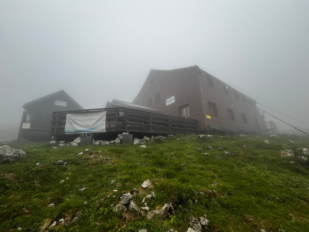Anstelle von sieben Stunden bin ich nur zweieinhalb unterwegs. Das reicht aber auch absolut. Ich bin total fertig, nachdem ich noch keine einzige Nacht auf dieser Reise durchschlafen konnte. Und letzte Nacht habe ich dann so gut wie gar nicht geschlafen. Entsprechend bin ich schon am Mittag auf der Hütte, die zu diesem Zeitpunkt noch völlig in der Wolkensuppe verschwindet.