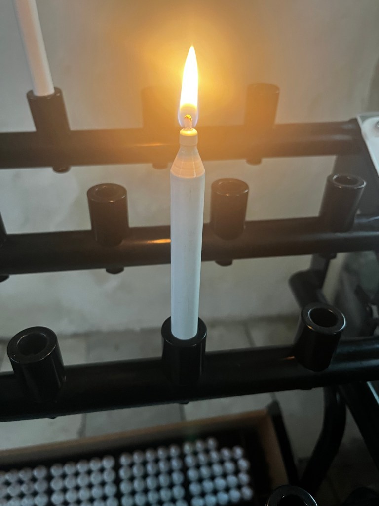 Ich kann nicht anders als Demut und auch Dankbarkeit zu empfinden. Einige Minuten vergehen, und ich sitze einfach nur in der Bank, blicke auf den Altar und durch die bunten Glasfenster. Still laufen mir ein paar Tränen über das Gesicht. Zwei Wochen bin ich unterwegs. Zwei Wochen, in denen ich gesund durch die Alpen gekommen bin, ganz allein. In mir macht sich Ruhe breit und als ich mich bereit fühle, stehe ich auf und zünde gegen einen kleinen Obolus eine Kerze an. „Danke!“ flüstere ich. Es fühlt sich in diesem Moment einfach richtig an.