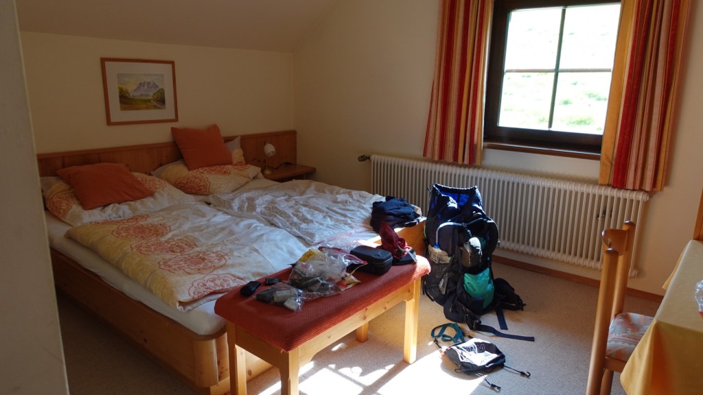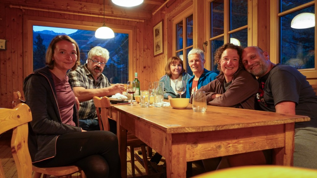 Die Schober-Hütte ist eine urige kleine Alpenvereinshütte und ich an diesem Tag der einzige Übernachtungsgast neben einem Pärchen aus Kufstein, dass einige Tage hier verbringt, um auf der Hütte auszuhelfen. Renate fragt mich, ob ich am Abend Lust habe, auf ein Glas Wein mit dem Hüttenteam zusammenzusitzen. „Na klar, das wäre toll!“ Obwohl ich mich an den Zustand des Alleinseins mittlerweile gewöhnt habe, freue ich mich immer über Gesellschaft – besonders dann, wenn ich in die Gemeinschaft meiner Gastgeber eingeladen werde und sei es nur für einen Abend.