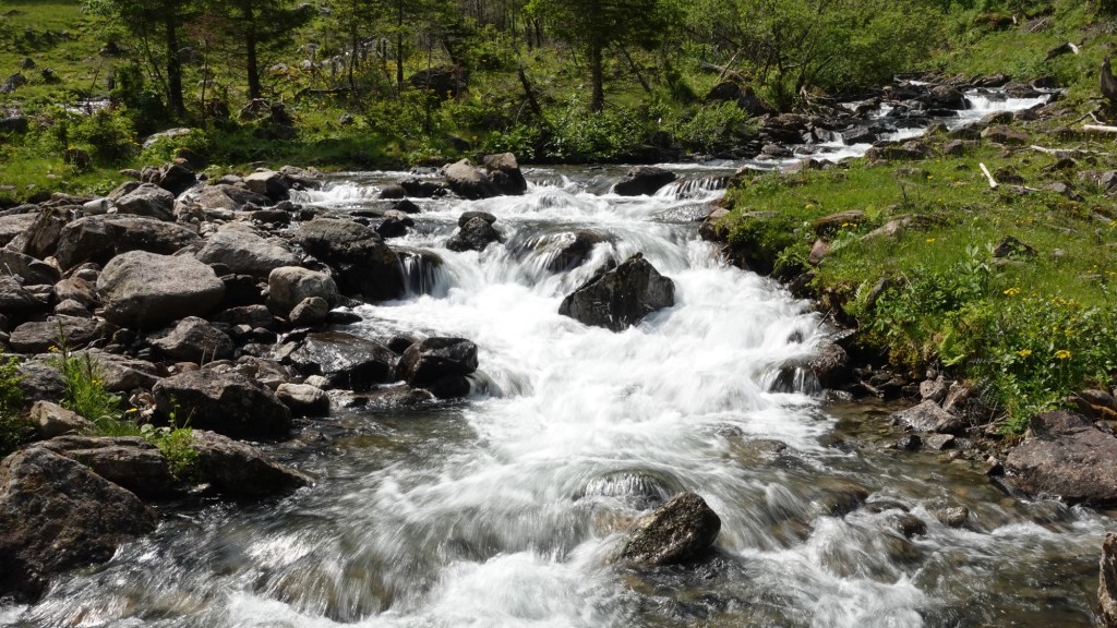 Jetzt erst stellt sich innere Ruhe ein. Ich schlüpfe aus meinen Schuhen und Wanderklamotten, taste mich vorsichtig in das eisige Bachwasser hinein. Als ich mit beiden Füßen und kniehoch in der Strömung stehe, tauche ich unter. Wie tausende kleine Nadeln sticht die Kälte überall an meinem Körper. Doch ich genieße den Moment. Mit dem Kopf wieder über der Wasseroberfläche ziehe ich die Luft tief in meine Lungen und springe aus dem Wasser. Die riesigen Steine am Ufer sind von der Sonne ganz aufgeheizt. Wohlige Wärme durchströmt mich, als ich mich darauf setze. Einen Moment möchte ich die Augen einfach geschlossen halten, an nichts denken. Konzentration. Auf das Rauschen des Bachs. Auf die Sonne in meinem Gesicht. Auf das Pumpen in meiner Brust.