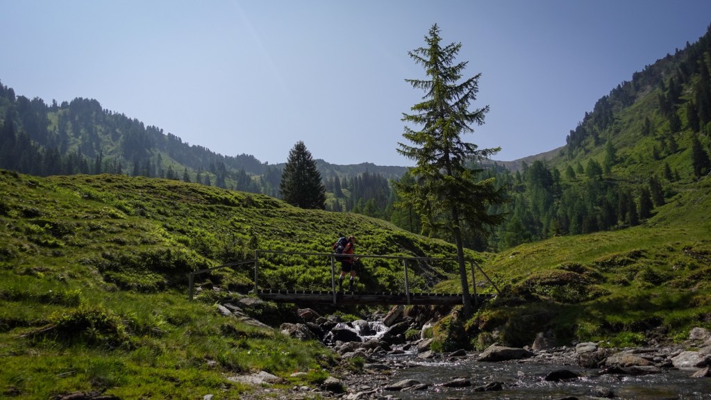 Jetzt bin ich wieder allein. Diesmal aber ist es schon weniger ungewohnt, weniger unbehaglich. Mit einem Lächeln im Gesicht laufe ich zurück zu der kleinen Pension und setze entspannt mein Frühstück fort. Vor mir liegt keine besonders herausfordernde Etappe. Sechs Stunden reine Gehzeit werden angegeben bis zu dem kleinen Dörfchen Sankt Nikolai im Sölktal. Bei bestem Sonnenschein laufe ich los. Die zwei Etappen gemeinsam mit Lisa waren toll. Gemeinsam ein Stück des Weges zu gehen, durch Regen, Kälte, Sonne und auch körperlichen Schmerz. Das schweißt zusammen und schafft gemeinsame Erinnerungen.