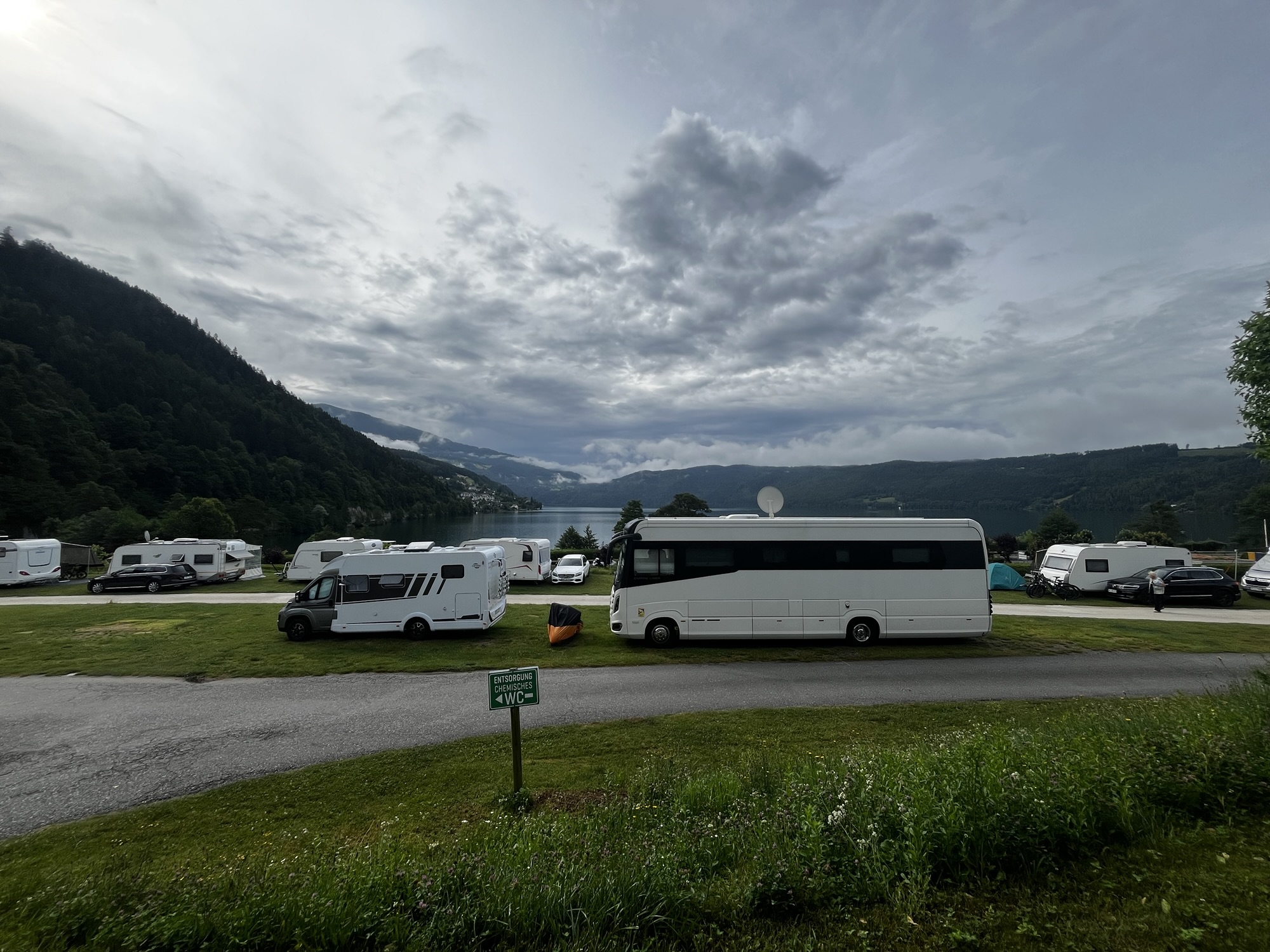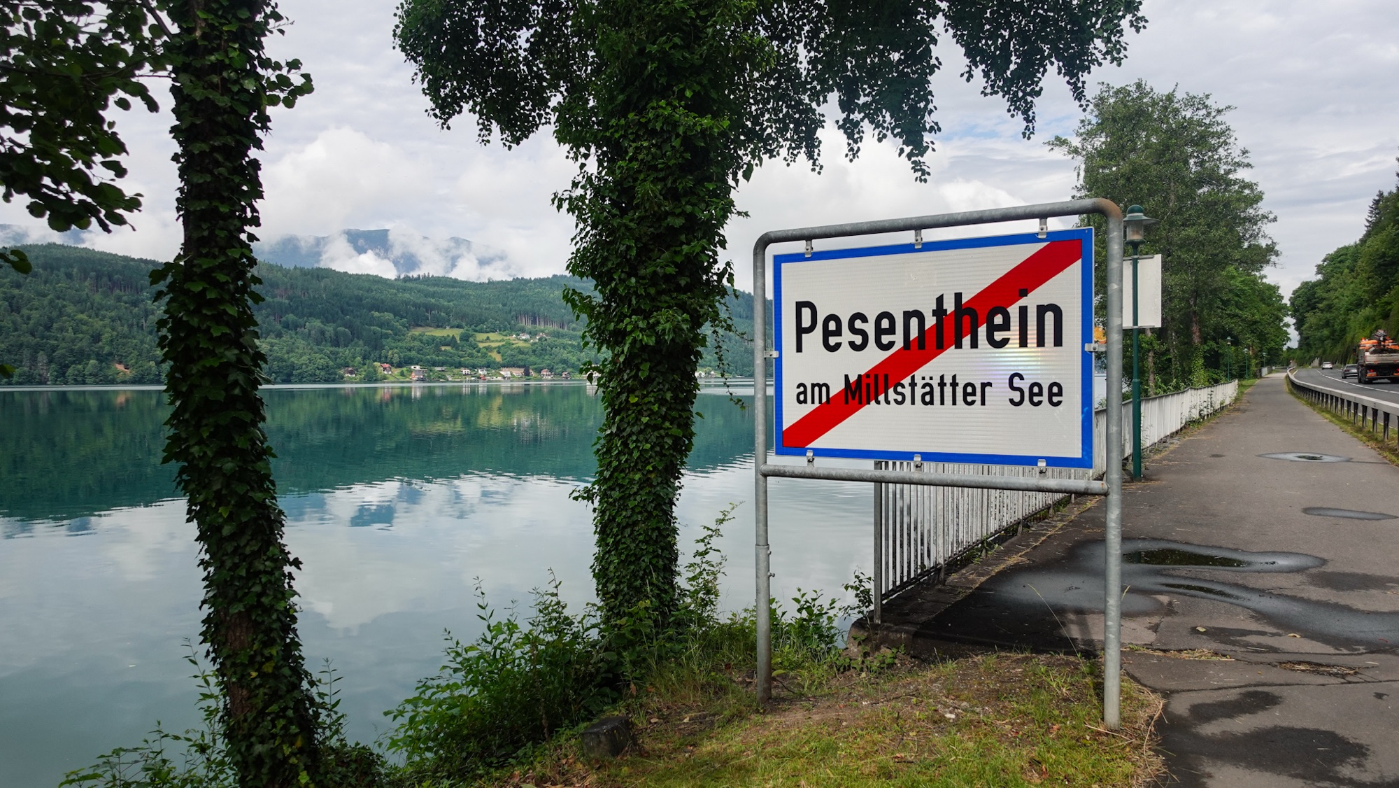 Gerädert stehe ich am nächsten Morgen auf. Was für eine Nacht. Schlaftrunken rühre ich vor meinem kleinen Zelt den Porridge zusammen und erhitze danach den Instant-Kaffee. Wenige Meter entfernt fährt ein „Camper“ die Markise seines Luxusliners heraus. Als die Befestigungsstangen stehen, rückt er zwei große eingetopfte Palmen daneben zurecht. Ich hingegen baue alles ab, verstaue sämtliche Ausrüstung in meinem Rucksack und laufe mit den zwei Mini-Töpfen und dem kaputten Göffel in Richtung Sanitärgebäude zum Abwasch. Wenig später schon verlasse ich Pesenthein und erreiche kurz vor 10.00 Uhr die Anlegestelle in Millstatt.