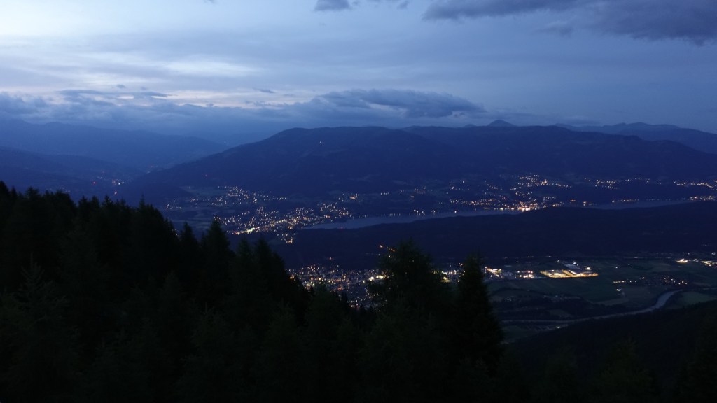 Noch eine Weile sitzen wir danach zusammen und unterhalten uns, bis schließlich einer nach dem anderen zu Bett geht. Das Bettenlager ist hell und modern gestaltet. Bodentief ragt das Fenster am Fußende meines Lagerplatzes nach unten und gibt den Blick auf das gesamte Drautal und den Millstätter See frei. Die Lichter der Stadt flirren in der Abenddämmerung. Wolkenfetzen haben sich von der dichten Decke darüber gelöst und verfangen sich in den zurückliegenden Nockbergen. Noch eine Weile beobachte ich aus meinem Bett, wie der Schleier der Dunkelheit sich über das Tal legt, bevor ich zufrieden wegschlummere.