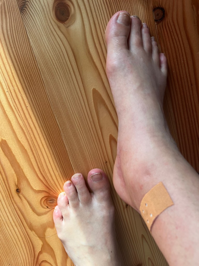 Die Sonne steht bereits hoch oben, als ich am nächsten Morgen die Augen öffne. Ein unangenehmes Ziehen durchfährt meinen rechten Fuß. Er ist geschwollen. Eiter tritt aus einer Einstichstelle genau über dem Knöchel auf der Innenseite. Ein Insektenstich als Erinnerung an die vergangene Campingnacht. Das hat mir gerade gefehlt, denke ich. Mit Panthenolsalbe und einem Pflaster versorge ich die Wunde, bevor ich humpelnd die Treppe hinuntersteige. Jeder Schritt wummert dumpf nach. Das kann ja was werden, denke ich, aber vielleicht sollte ich auch einfach nicht so viel darüber nachdenken.