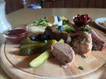 Bester Gailtaler Speck verströmt seinen Duft im Gastraum, als ich zum Frühstück Platz nehme. Auch mehrere Sorten Käse sowie Kaminwurz, Schmalz und Leberwurst sind liebevoll auf dem Holzbrettchen vor mir drapiert. Dazu Butter und ein hausgemachter Topfenaufstrich – die perfekte Basis für eine lange Wanderung, wie sie mir heute bevorsteht.