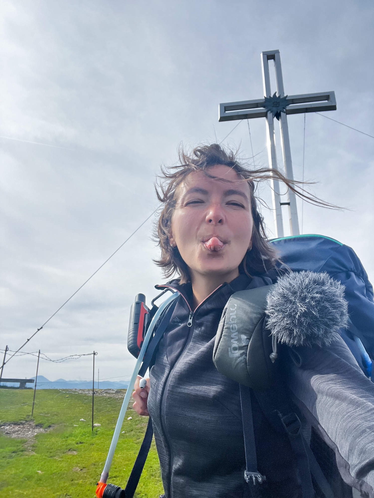 „Du schaust aber auch aus, als hättest du einen weiten Weg vor dir,“ spricht mich einer der Radler an und reißt mich aus meinem Tagtraum. „Kann man so sagen,“ antworte ich und erzähle von meinem Weg. „Na, Mensch, das scheinen derzeit viele zu machen. Gestern waren wir auf der Mehrl-Hütte und dort erzählte die Wirtin, dass eine junge Frau, Journalistin, allein von Wien nach Nizza läuft.“ Ich feixe. „Naja, damit werde wohl ich gemeint gewesen sein.“ – „Ach nein, was für ein Zufall. Die Welt ist ein Dorf!“ lacht er und meine Geschichte scheint sich, wie ein Lauffeuer hinter mir auszubreiten.