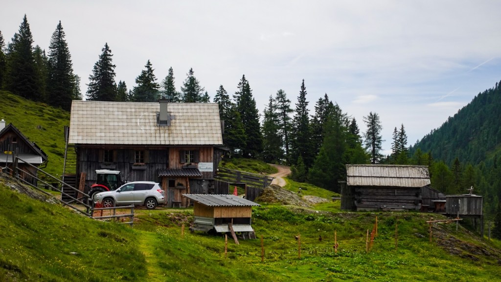 Schließlich trete ich aus den Bäumen heraus und erkenne bereits die Gusenalm. Als ich näher komme, öffnet sich ein Fenster im oberen Stockwerk der Holzhütte. „Grüß dich! Sag, magst was trinken?,“ ruft eine feste aber freundliche Stimme herunter. Ich blicke auf und sehe einen Mann im mittleren Alter, graues Haar und Bart, gut in Form, der Rücken kerzengerade. Das muss wohl Otto sein, denke ich. „Ja, gern!“ rufe ich breit lächelnd zurück. Ich betrete die Hütte. Sie ist gemütlich eingerichtet. In der kleinen Küche dudelt das Radio. Zahlreiche Familienfotos stehen und hängen in der Niesche rund um den Esstisch. „Setz dich gern. Was magst du trinken?“ fragt Otto. „Einen Almdudler, wenn du einen hast,“ antworte ich. „Ja, natürlich.“ Kurz verlässt Otto den Raum und kommt mit einem Almdudler für mich und einer Frucade für sich wieder zurück.