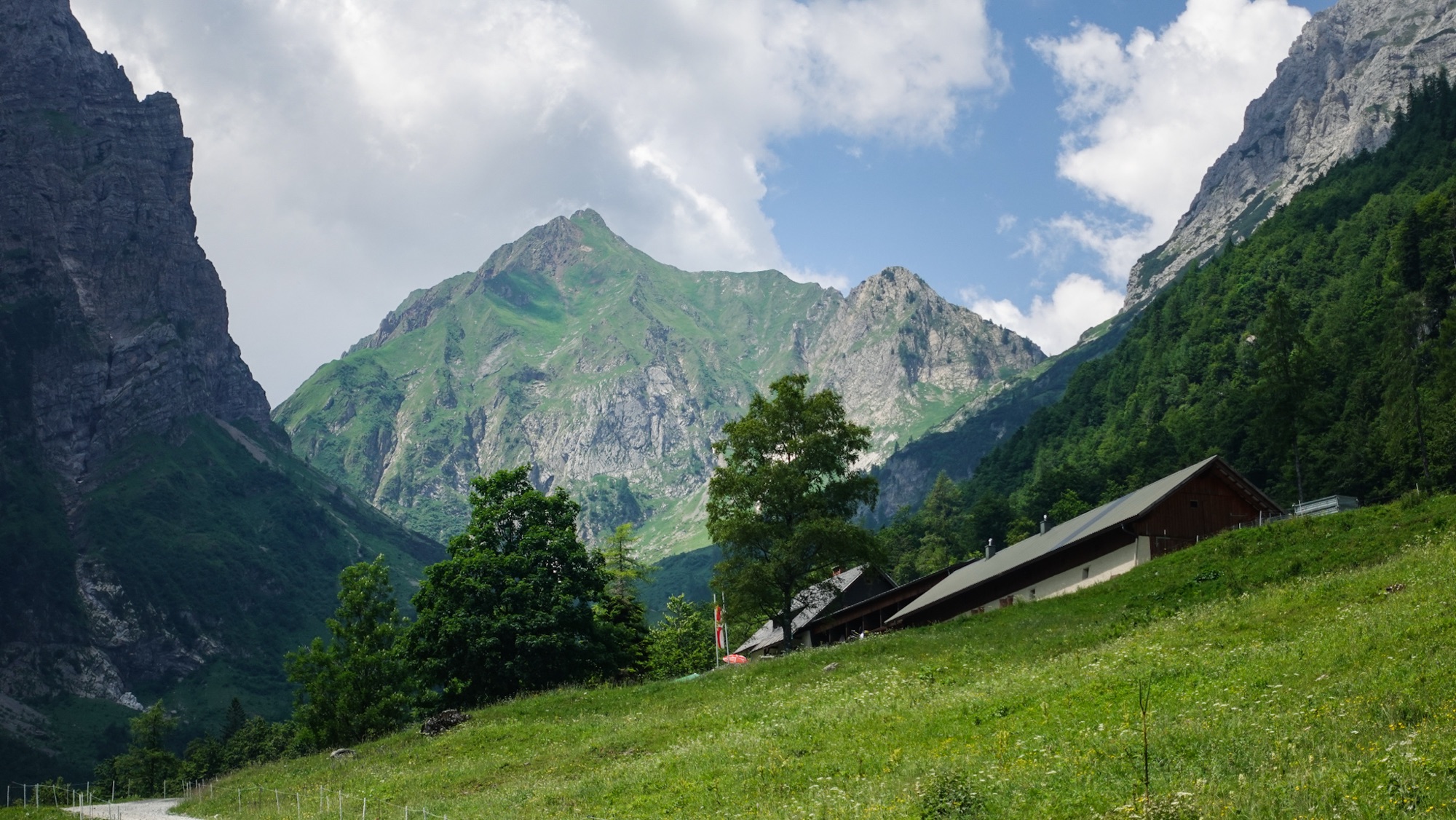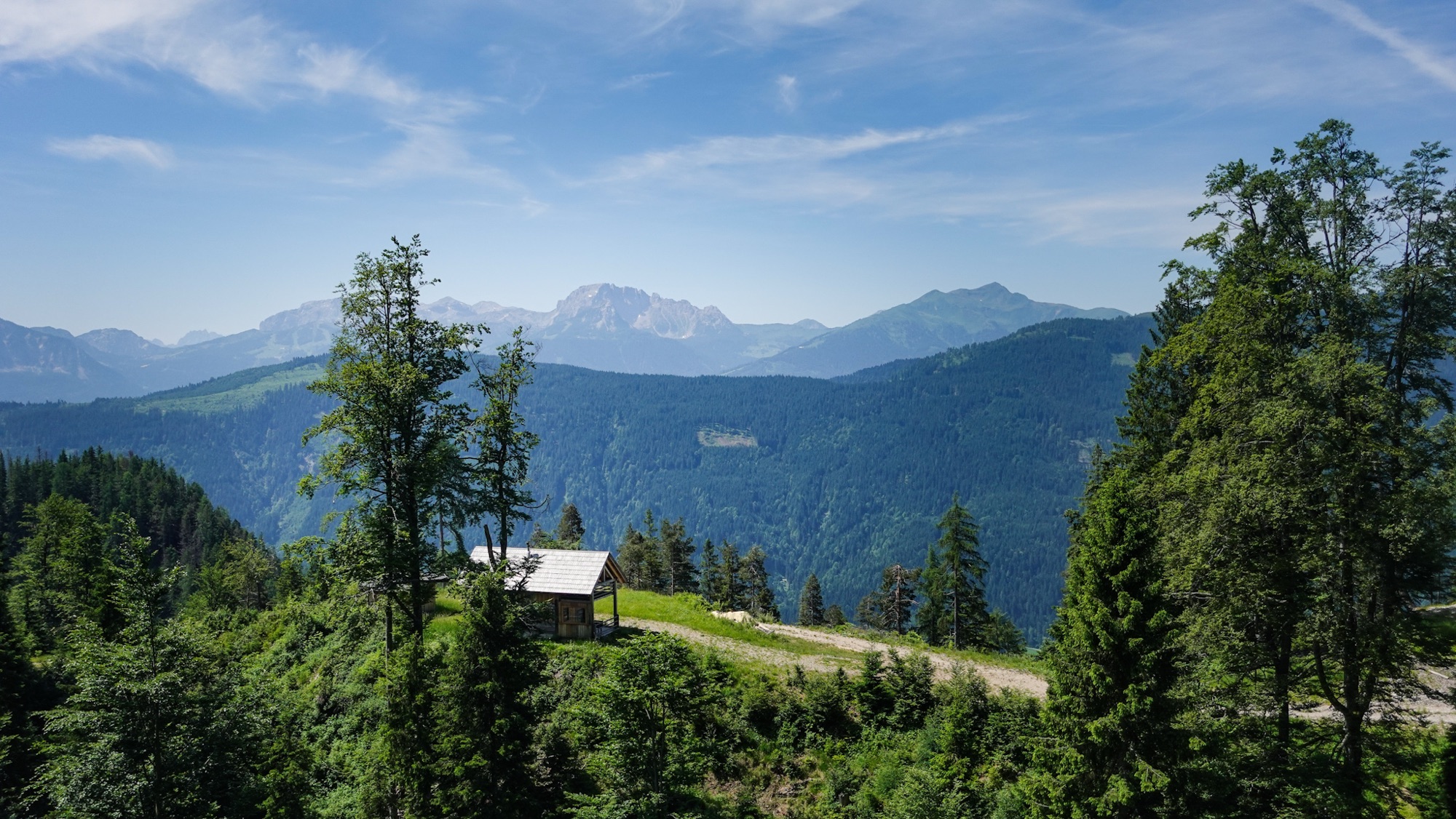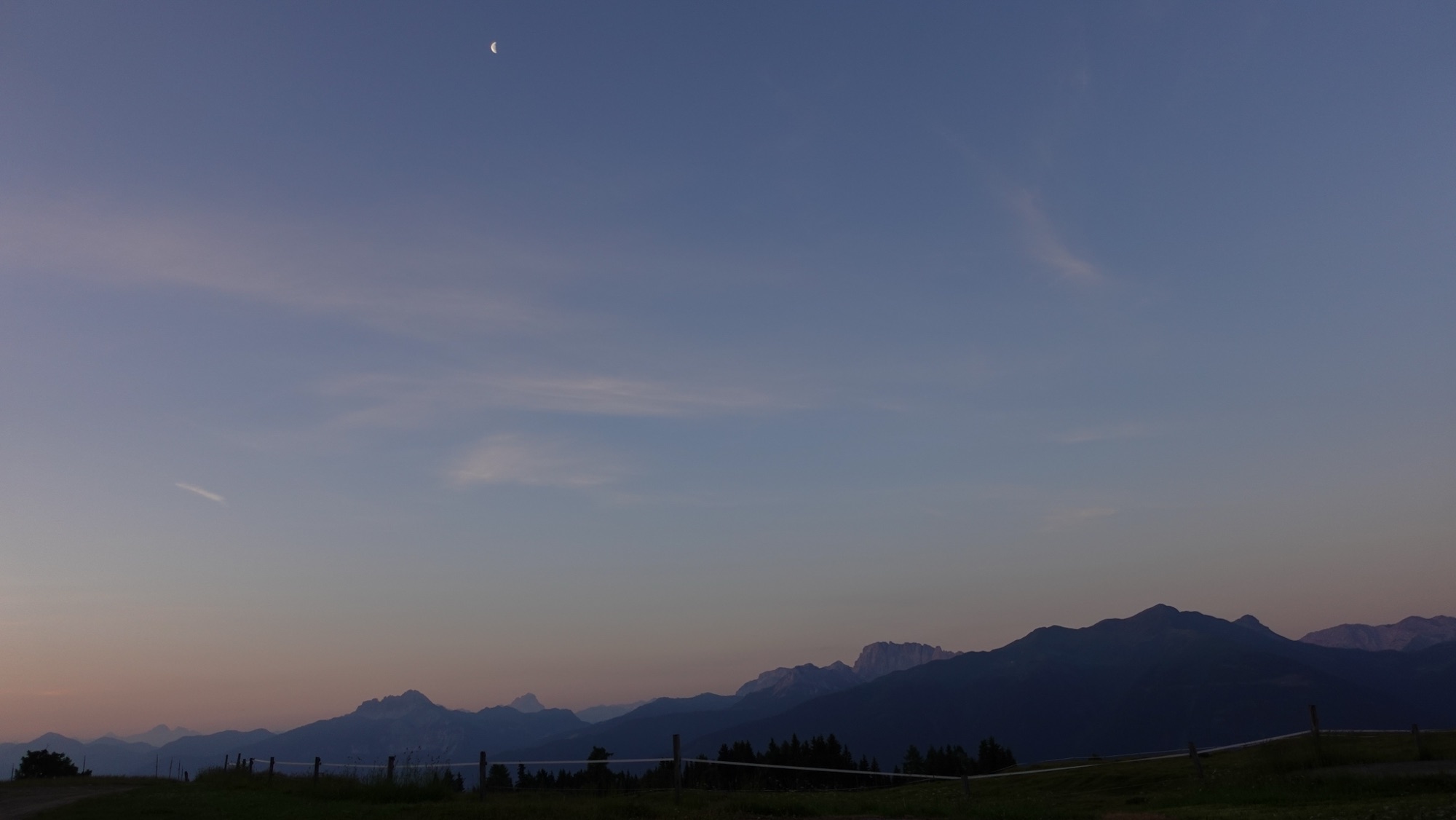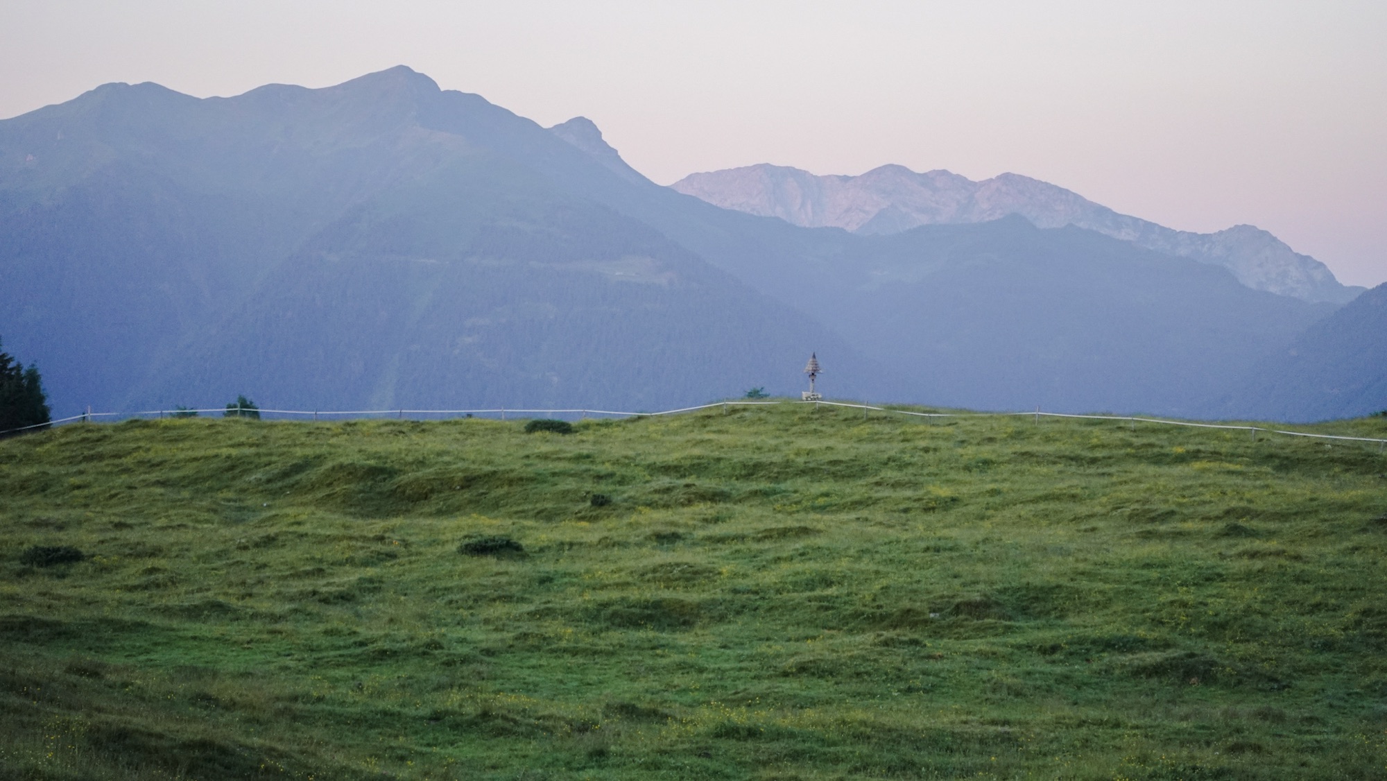 Abgekämpft erreiche ich um 17.15 Uhr die Reisacher Jochalm. Was für ein Ritt. Entspannt ist anders. Eine kleine etwas ältere Frau nimmt mich mit einem warmen Lächeln in Empfang. Ihr Name ist Monika. Ewald, ihr Sohn, ist der Senner der Reisacher Jochalm – ein junger Mann, etwa in meinem Alter. In diesem Jahr bewirtschaften sie zum ersten Mal die Alm. Und so bin ich für Monika und Ewald nicht nur der erste Übernachtungsgast überhaupt. Ich lasse mich auf der Bank vor der Almhütte nieder. Unter mir liegt das Gailtal.