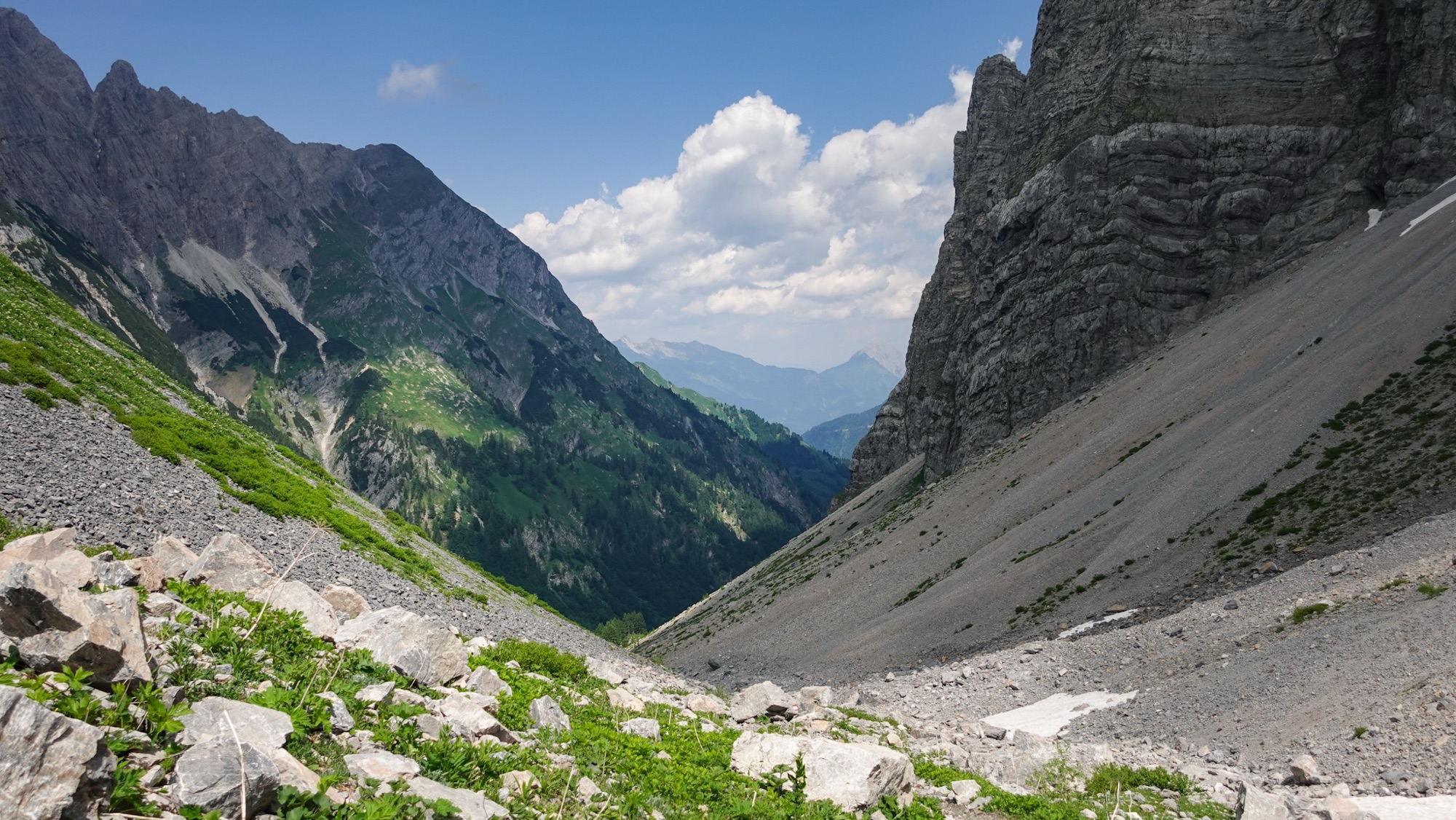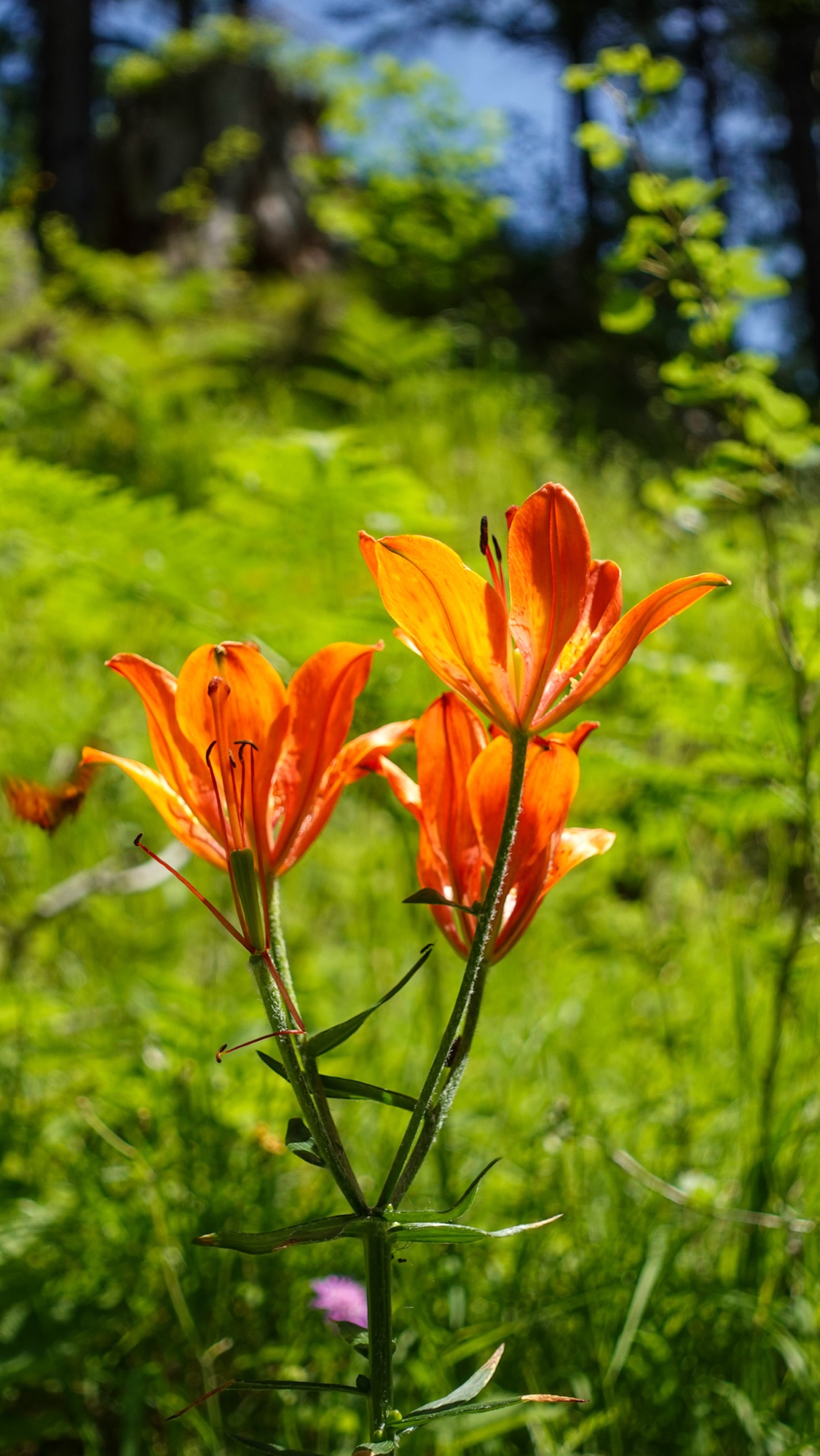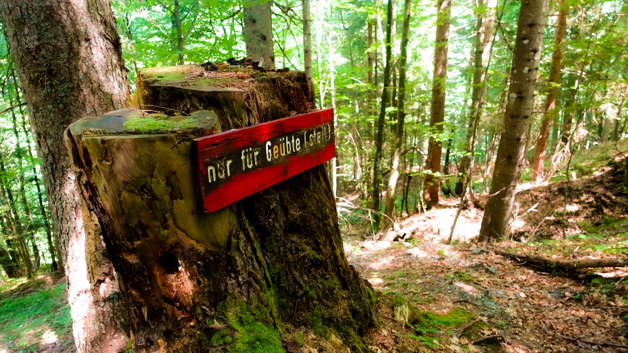 Kein Wölkchen ist am Himmel zu sehen. Am Wegesrand strecken orangene Lilien ihre Hälse der Sonne entgegen. Es duftet nach Sommer. Als ich aus dem Wald heraustrete, erhebt sich der Reißkofel vor mir. Die südliche Umgehung führt mich durch steiles Gelände mitten im Wald. Ein Schild weist darauf hin, dass der Weg „nur für Geübte“ geeignet ist. Die größte Herausforderung ist jedoch nicht das Gefälle, sondern die Tatsache, dass eine zentimeterdicke Fichtennadelschicht den Pfad bedeckt. Sie verwandeln den Weg in eine spiegelglatte Eisbahn. Zwei Mal zieht es mir beim Abstieg die Beine weg und ich lande unsanft auf dem Hintern. „Scheiße!“ brülle ich schließlich durch den Wald. Die Wut bricht aus mir heraus. Immerhin deuten die kräftigen Farben der Wegmarkierungen darauf hin, dass der Pfad durchaus noch begangen, ganz offensichtlich aber nur halbherzig gewartet wird. Das bestätigt sich auch, als ich mich wenig später durch kräftige Jungfichten wühle, die den Wanderweg überwuchern.