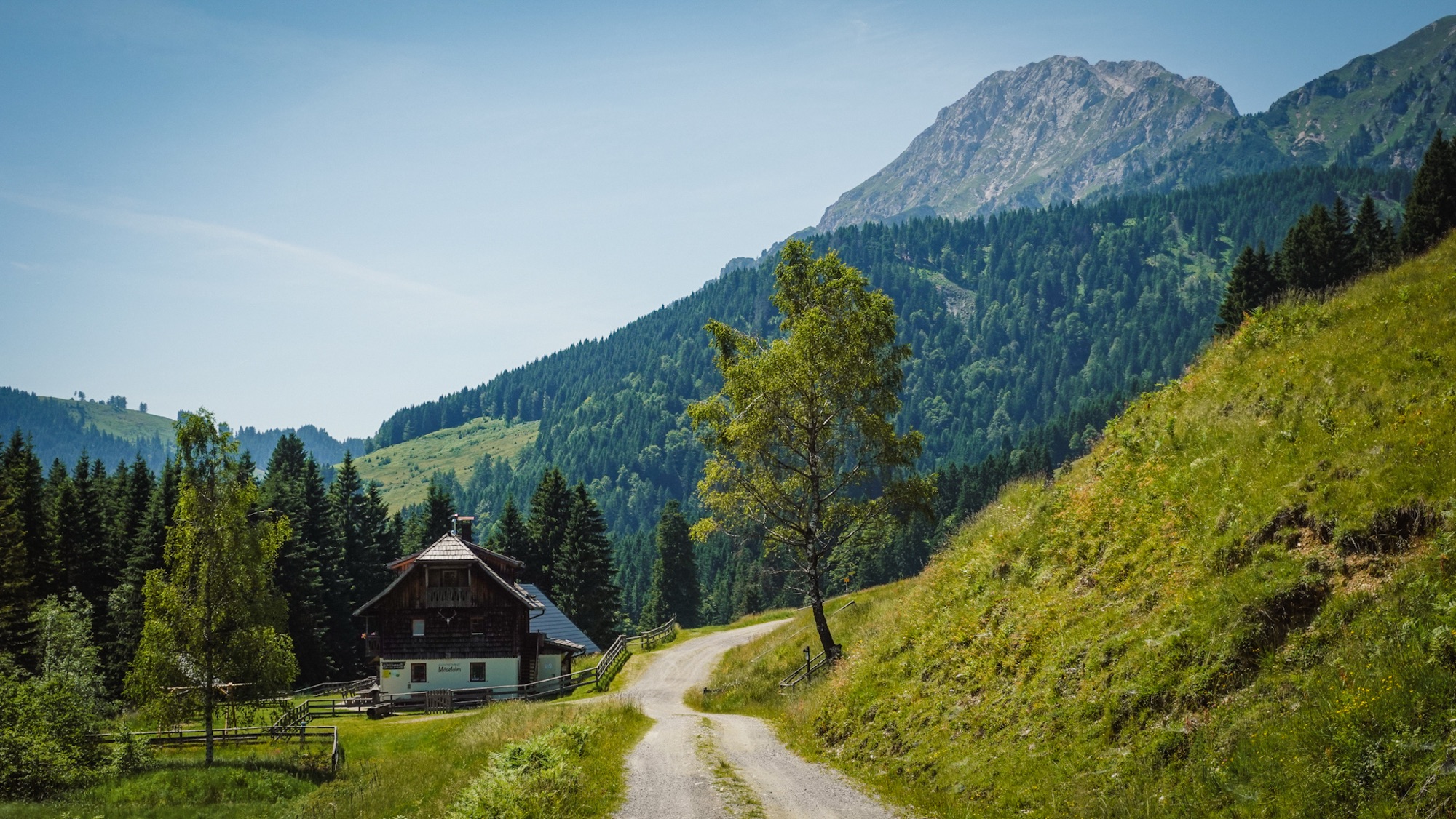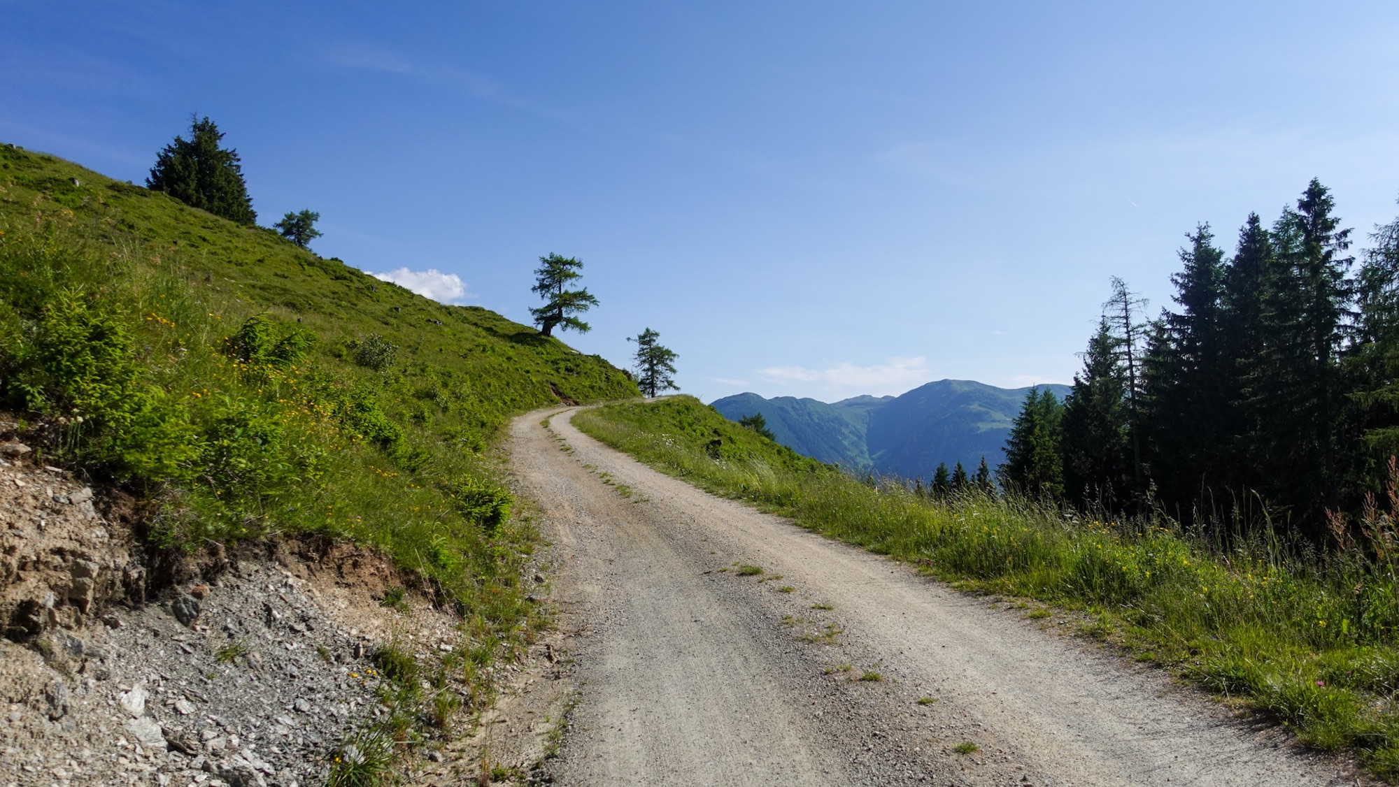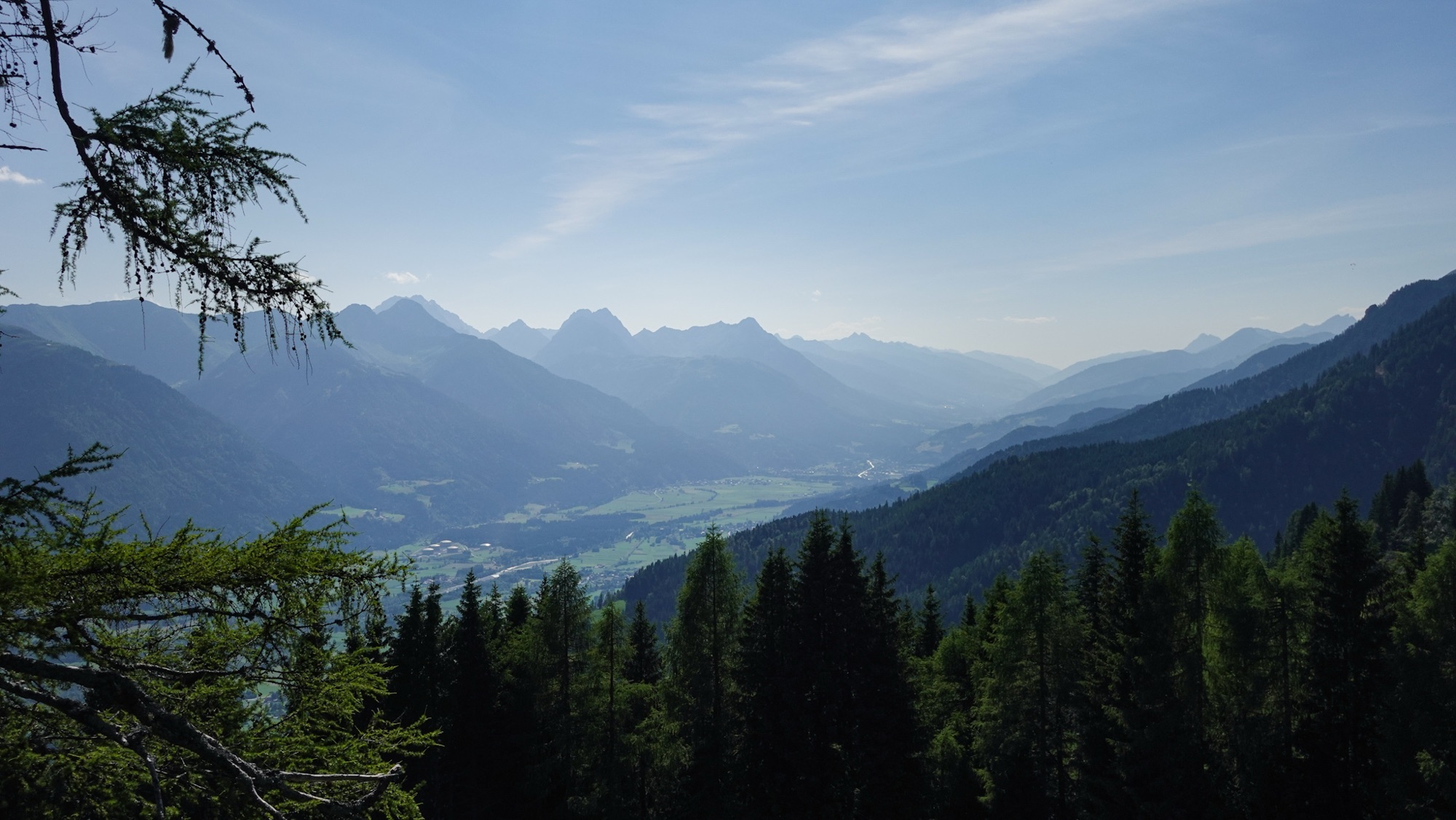 Plötzlich durchdringt „Hedwigs Theme“ den Flow der Musik. „Julia hier, Hallo!“ melde ich mich am Telefon. „Ja, also es klappt mit der Übernachtung. Wir haben einen Schlafplatz frei.“ – „Perfekt, dann sehen wir uns später!“ – „Wann wird später circa sein?“ Ich überlege kurz – zu kurz. „17.00 Uhr,“ platzt es aus mir heraus und als ich wenige Augenblicke später auflege, merke ich, unter welchen Druck ich mich gerade wieder selbst setze. Es ist 11.00 Uhr und ich habe noch nicht einmal drei der insgesamt 25 Kilometer geschafft. Im Stechschritt laufe ich ins Tal nach Weißbriach, lege hastig eine Mittagspause ein und mache mich an den zweiten Aufstieg des Tages.