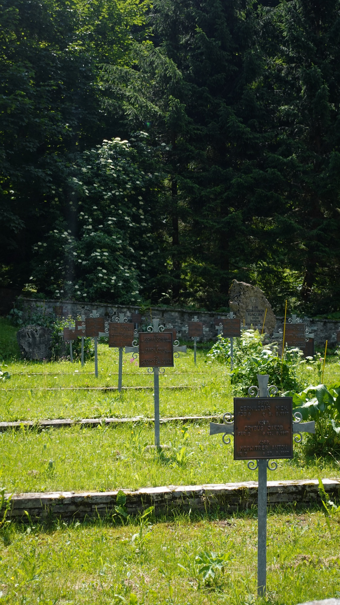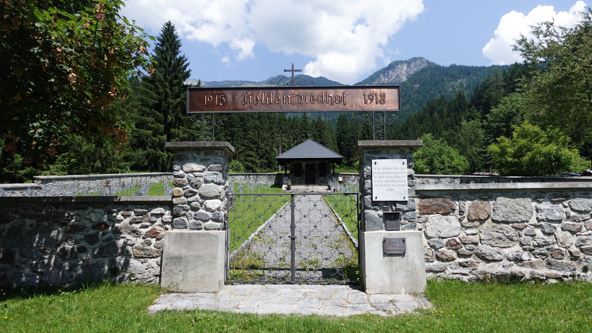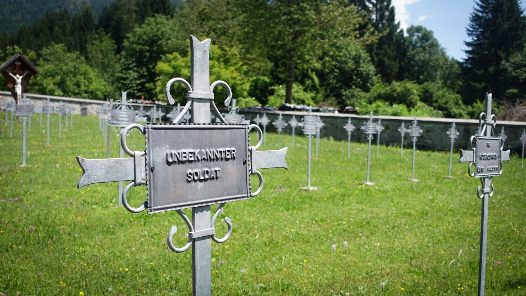 Über viele kleine Bergdörfer steige ich ins Gailtal ab. Es duftet nach frisch gehauenem Gras. Kurz vor Dellach erreiche ich einen Ort, der die Stille ganz anders trägt als die ihn umgebenden Berge: den Heldenfriedhof. Auf der weiten Wiese stehen zahlreiche Kreuze fast identisch nebeneinander. Lange Reihen von stummen Namen, viele längst in Vergessenheit geraten, andere vollkommen namenlos. Sie erinnern an die Schrecken des Ersten Weltkrieges, der unweit von hier hoch oben auf der österreichisch-italienischen Grenze zwischen 1915 und 1918 tobte.