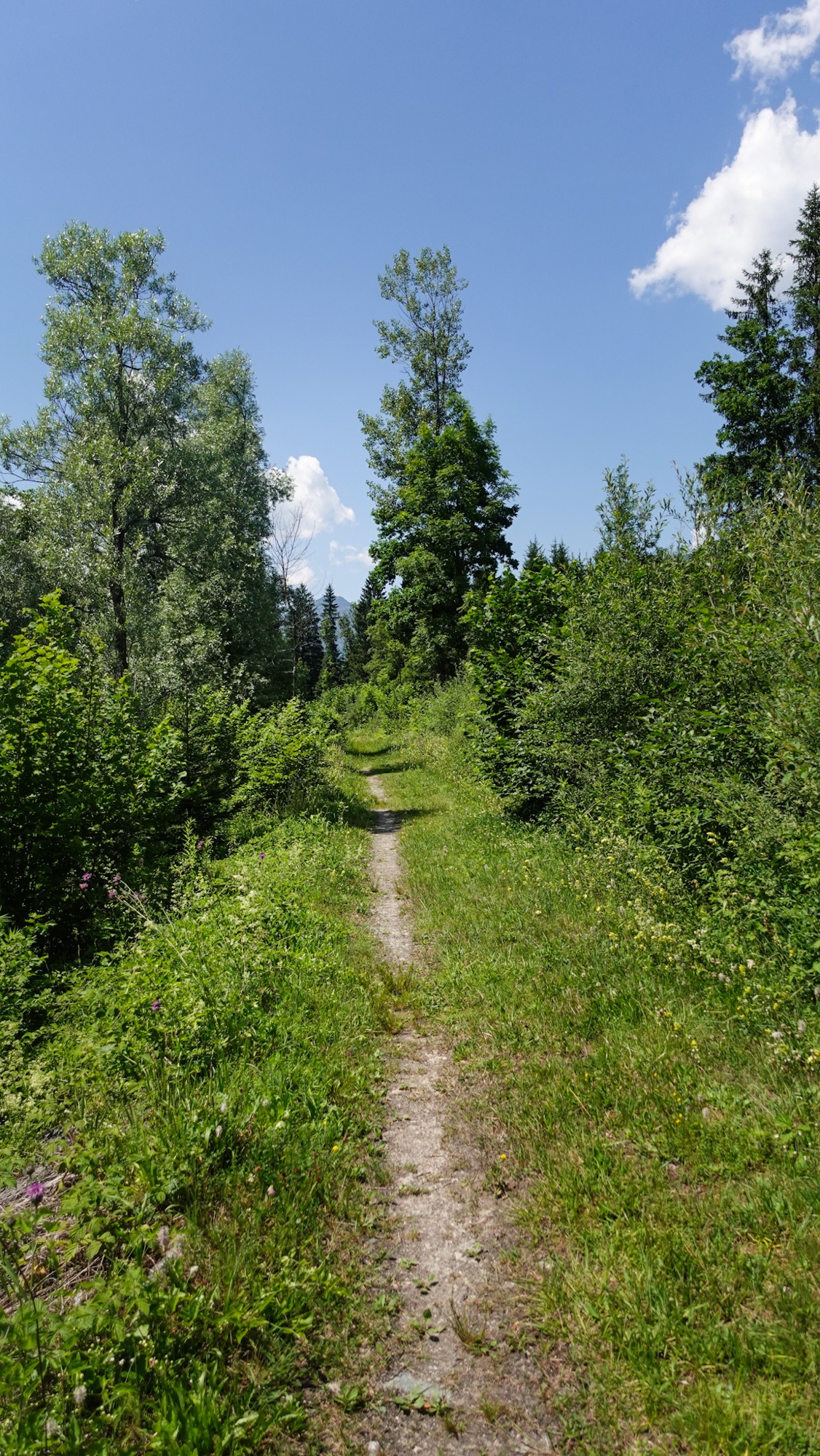 Ich lasse Dellach und damit auch den Reißkofel hinter mir. Kaum habe ich das Tal erreicht, laufe ich bald nur noch in der gleißenden Sonne. Über Feldwege führt mein Weg an die Gail, der ich bis nach Kötschach-Mauthen über asphaltierte Radwege folgen werde. Ich fühle mich erschöpft. Mein Hals brennt. Die beginnende Erkältung lässt sich kaum noch ignorieren. Ich spüre, wie meine Knie weich werden und der Blutdruck in den Keller sackt.