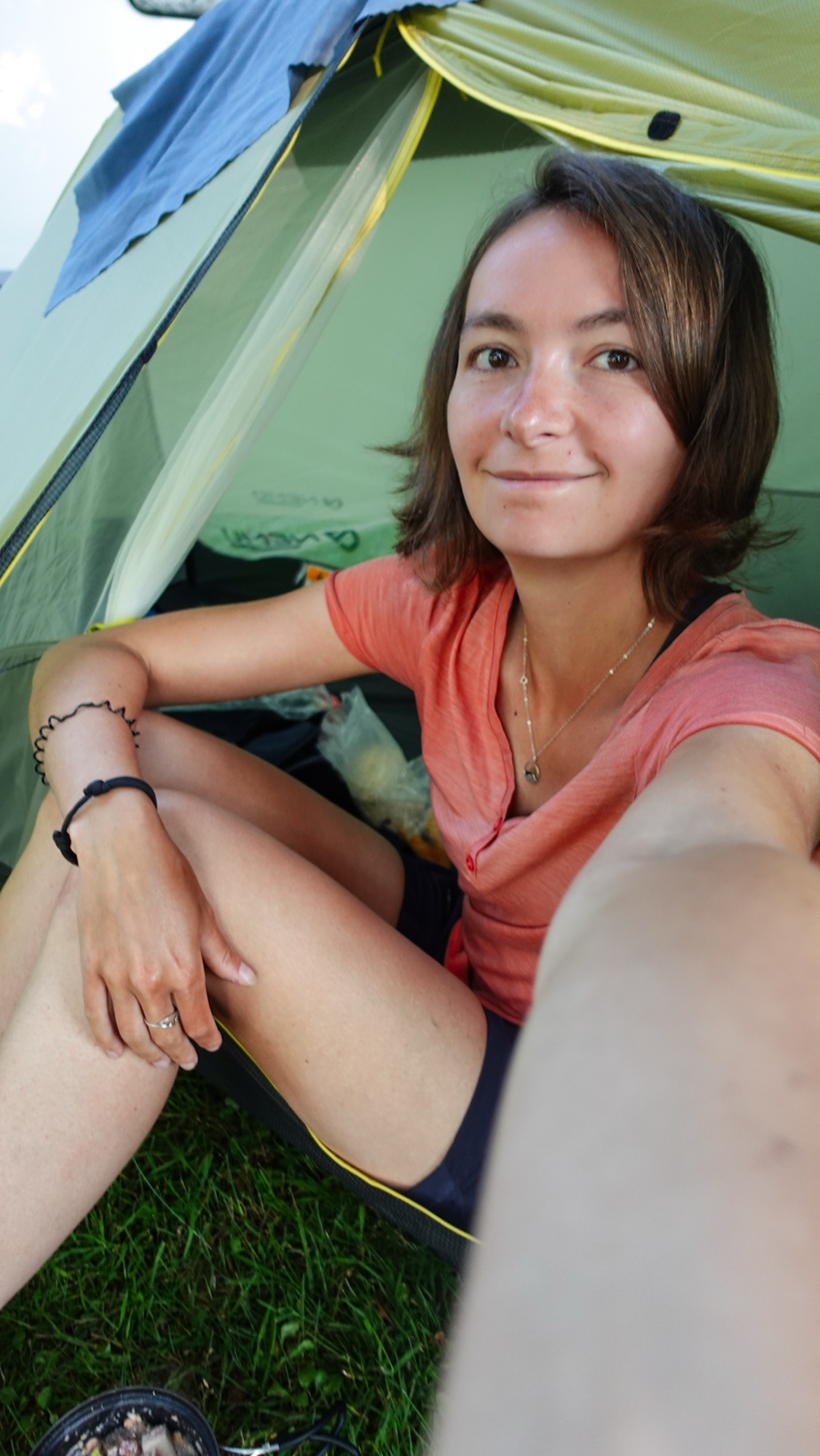 Die Sonne scheint schon warm auf mein Zelt, als ich die Augen am Morgen öffne. Zügig bereite ich mein Frühstück zu und packe all meine Ausrüstung zusammen. Innerlich schwanke ich zwischen Entspannung und Anspannung. Der Grund: Ich habe keinen festen Schlafplatz für heute Abend. Kein Zeitdruck, aber dafür Ungewissheit und Aufregung, denn bisher habe ich noch keine einzige Nacht wild gecampt. Noch überwiegt die Entspannung und so sitze ich eine Stunde im Waschraum neben der Steckdose, den Blick starr auf die LED-Lämpchen meiner Powerbank geheftet. Wann ist das blöde Ding endlich voll?!