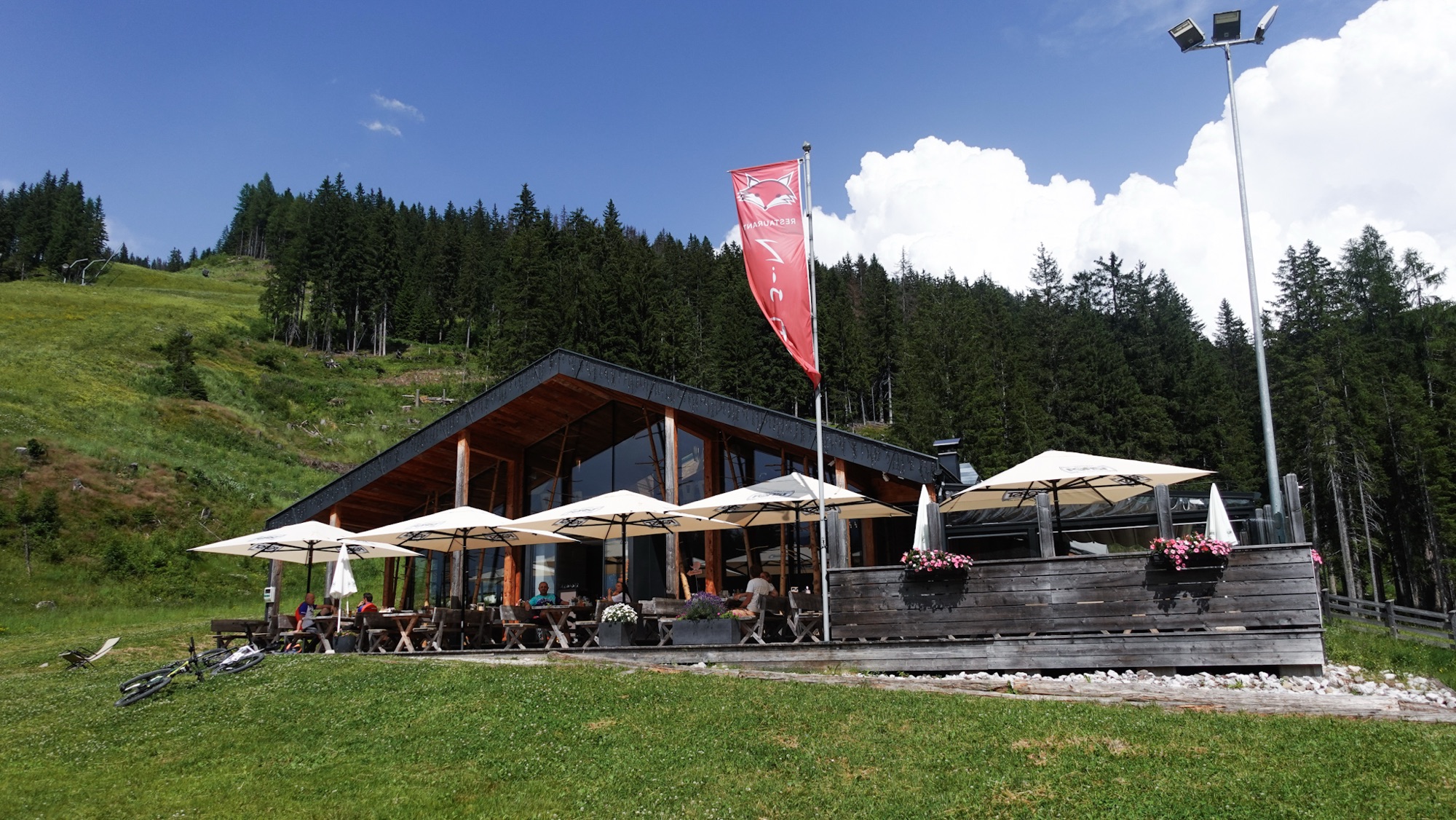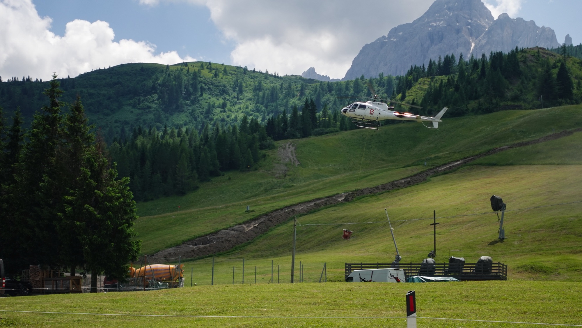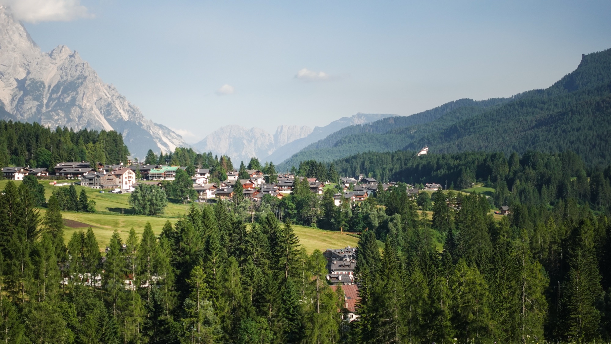 Mit „Floating through Space“ in den Ohren schlendere ich leichtfüßig entlang der Baumgrenze oberhalb von Cortina. Als ich das Städtchen erreiche, hämmert, bohrt und baggert es an jeder Ecke. Die Olympischen Winterspiele werfen ihre Schatten voraus. Hotels wachsen in die Höhe, Tiefgaragen werden freigelegt, Parkplätze asphaltiert. Über 20 Baukräne kann ich über den Dächern der Stadt zählen. Der Krach überfordert mich ein wenig. Schnellen Schrittes erreiche ich den Campingplatz. Basti ist gerade von seiner Radtour zurück. Gemeinsam leeren wir einen riesigen Topf Nudeln mit Tomatensoße. Seitdem ich wandere, können die Portionen nicht groß genug sein. Im sanften Abendlicht spazieren wir hinauf in die Stadt. Vor der Campanile im Zentrum zählt eine Uhr die Tage, Stunden, Minuten und Sekunden bis Olympia herunter. Die schicken Auslagen in den Schaufenstern tragen nur vereinzelt Preisschilder. Aber das ist auch nicht nötig. Pelzmantel, Designer-Skibrille und Schweizer Uhr sind für den schmalen Taler nicht zu haben. Cortina ist ein teures Pflaster und so begnügen wir uns mit einem Eisbecher. Für die zentrale Lage direkt am Markt ist dieser wiederum ausgesprochen preisgünstig. Währenddessen versinkt die Sonne hinter der Tofana die Mezzo. Dramatisch umrahmt das Licht den Gipfel beinah wie ein Heiligenschein. Kitschiger hätte man es sich nicht ausmalen können. Es ist ein schöner vorerst letzter gemeinsamer Abend. Morgen werde ich für die nächsten drei Wochen allein weiterziehen.