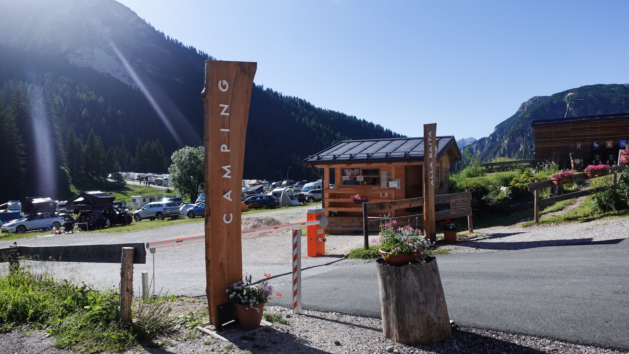 Nach Wochen des Laufens fühlt es sich ganz komisch an, in den Caravan zu steigen, den Sebastian für seinen Urlaub geliehen hat. Während ich den Karnischen Höhenweg gegangen bin, ist er mit dem Mountainbike in den vergangenen Tagen bereits einige Alpenpässe abgefahren. Jetzt steuern wir gemeinsam jenen Campingplatz an, auf dem ich mit meinen Eltern zuletzt vor 24 Jahren eingecheckt habe. Es ist ein seltsames und zugleich vertrautes Gefühl, als wir durch die Schranke auf den Caravanplatz einbiegen. So manche Ecke erkenne ich wieder und freue mich innerlich.