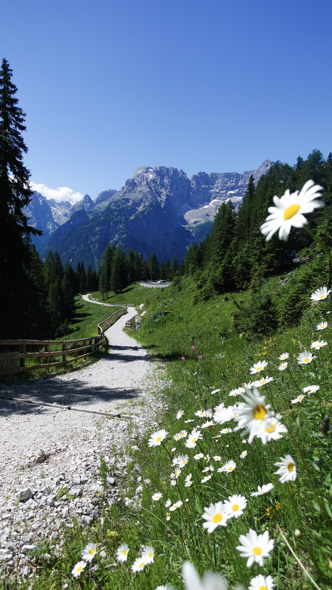 Es ist der Morgen des 28. Juni als Sebastian mich wieder nach Moos zurückfährt. Ich hüpfe aus dem Auto, werfe ihm noch einen Kuss zu und laufe geradewegs hinein in das Fischleintal. Allein bin ich hier nicht. Zahlreiche Tageswanderer pilgern in Richtung der Drei Zinnen, der wohl bekanntesten Formation in den Dolomiten.