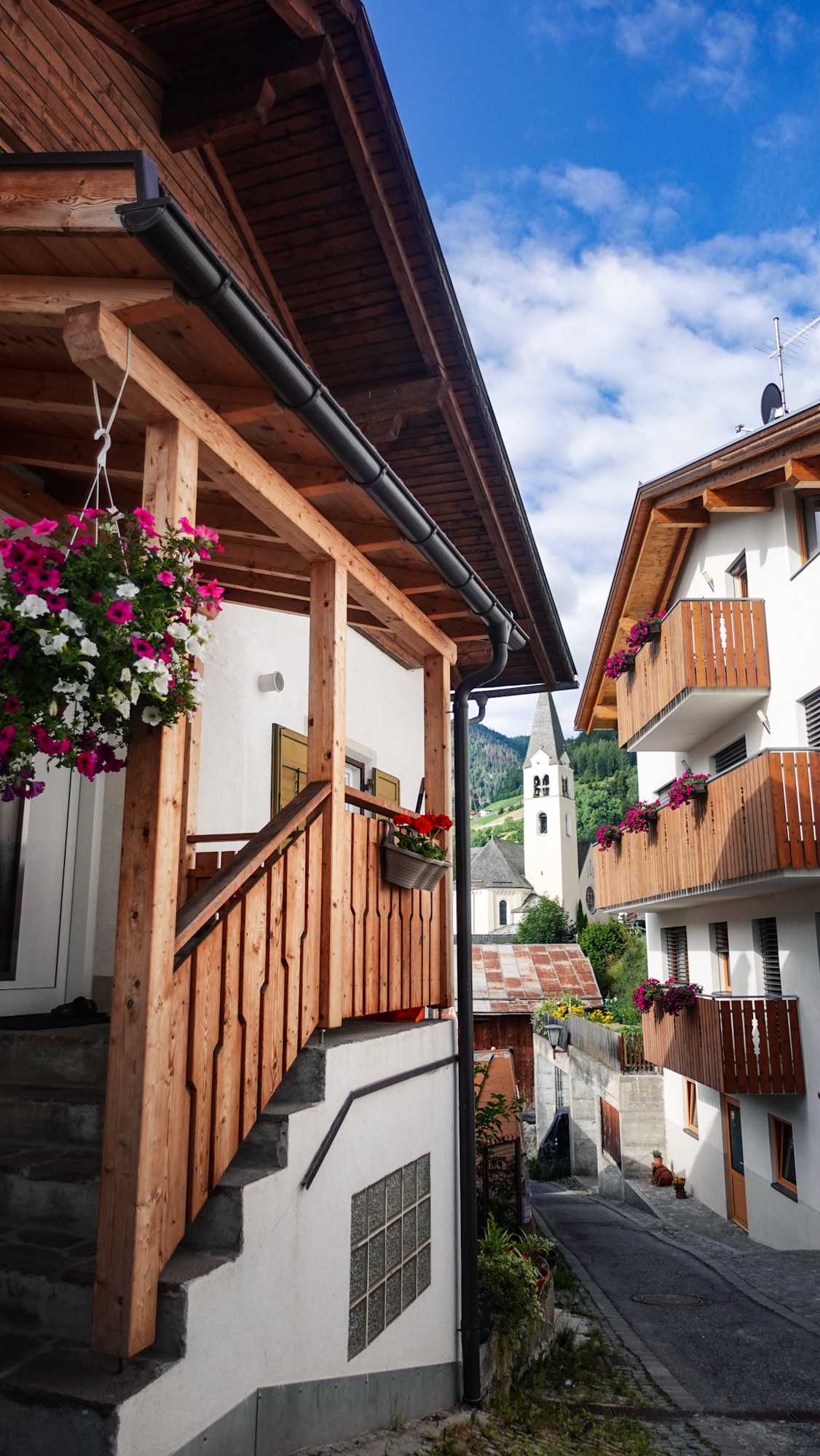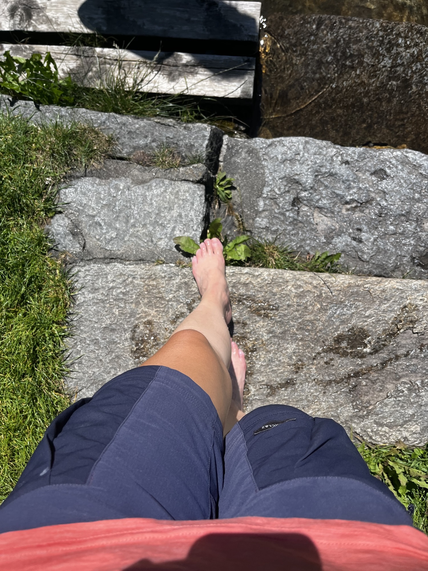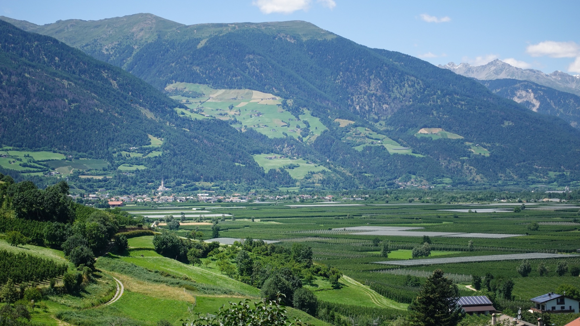 Unser Tag plätschert dahin. Wir lassen uns Zeit auf der kurzen Etappe. Bei Vinschgerl, Nutella, Tomatenmark und Frischkäse legen wir eine Mittagsrast im Schatten ein. Ein Erdbeer-Automat versüßt uns den Weg durch Laas. Später lädt eine Kneipp-Anlage zum Verweilen ein. Wir haben keine Eile. Südtirol ist italienisch genug für eine ausgedehnte Siesta und so müssen wir ohnehin warten, bis die Geschäfte wieder öffnen. Auch die Profiltiefe meiner Bergstiefel nähert sich langsam der von Slicks. Ich klingel in meinem heimatlichen Outdoorgeschäft des Vertrauens durch und bestelle mir das gleiche Modell noch einmal. Wenn meine Eltern mich in zwei Wochen besuchen kommen, werden sie mir dankenswerterweise die neuen Schuhe mitbringen.