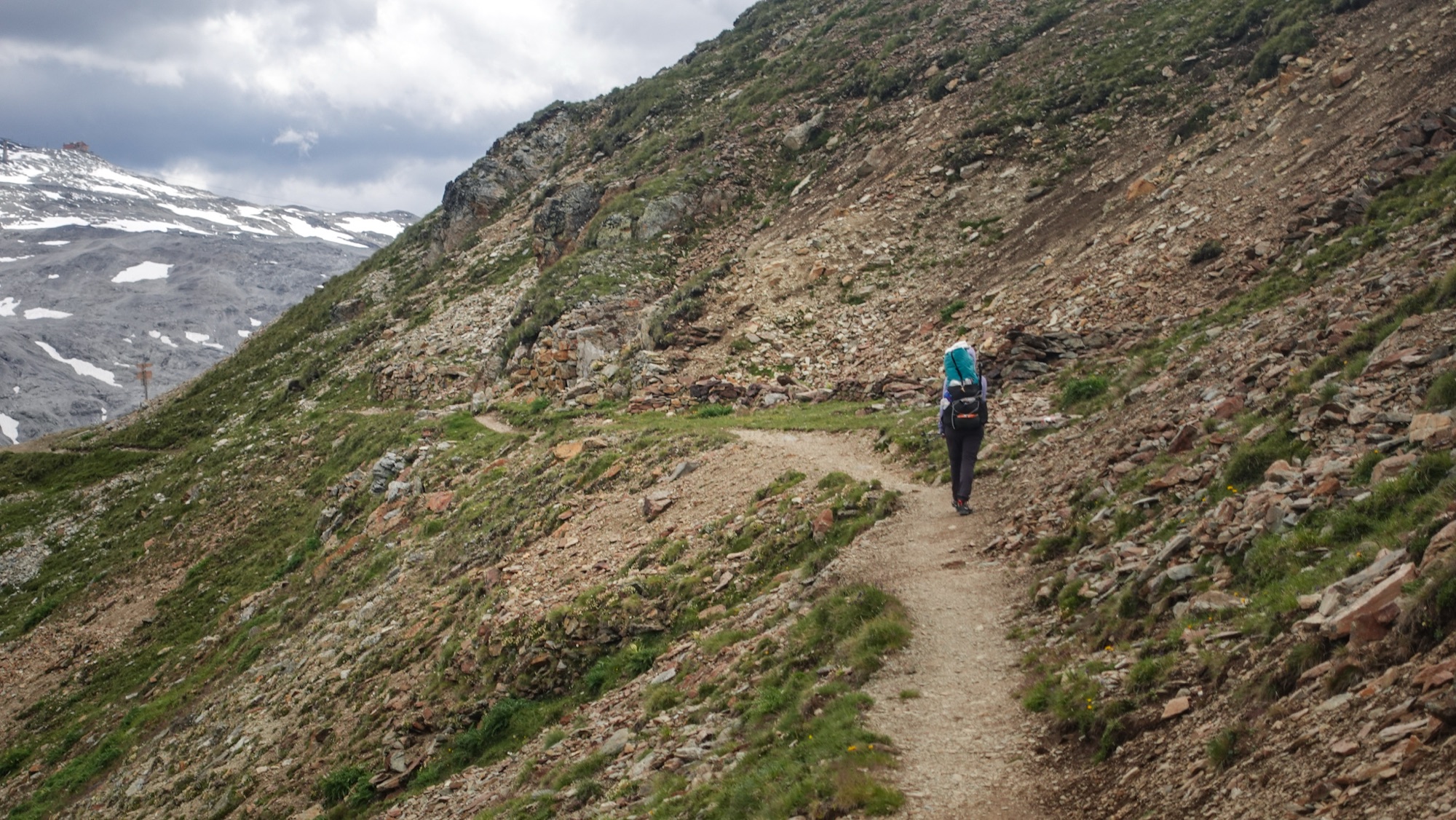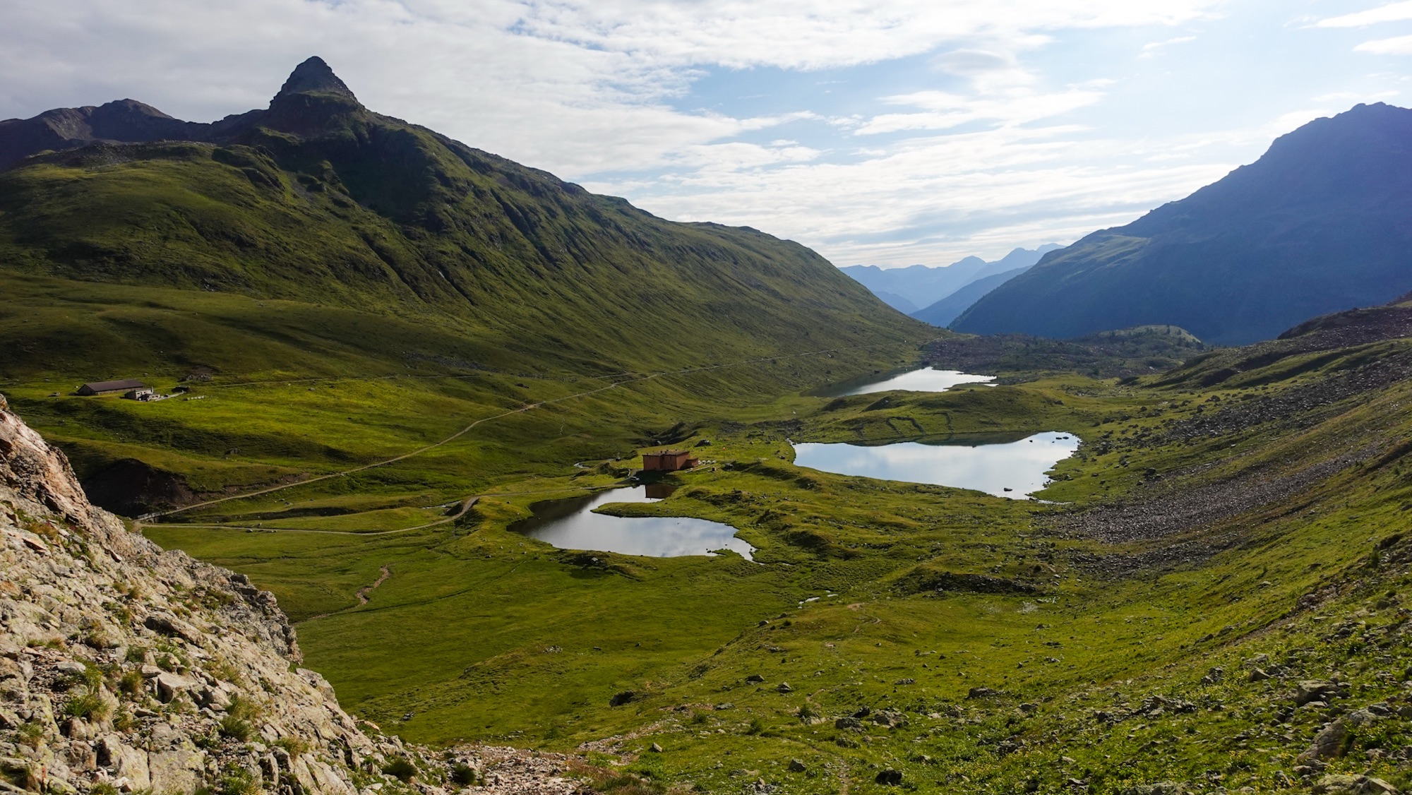 Wie immer ist Celine beim Abbau ihres Zeltes am nächsten Morgen deutlich schneller als ich. (Im Aufbau hatte immer ich die Nase vorn 🙂 Celine möchte weiter nördlich durch die Schweiz bis zum Lago Maggiore gehen. Ihr heutiges Ziel wird das Rifugio Palù sein. Ich hingegen laufe zum Rifugio Cristina, um als nächsten großen Meilenstein den Lago di Como zu erreichen. Noch einmal frühstücken wir gemeinsam, dann eine letzte Umarmung bevor Celine sich rasch entfernt. Wir beide hassen Abschiede. Wird das Drama zu groß, haben wir unsere Emotionen nicht mehr im Griff. Also kurz und schmerzlos. Es ist schließlich nicht für immer.