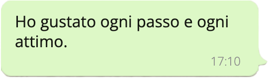 Lang habe ich gesucht, ohne es zu merken. Auf diesem Weg, im Gehen selbst hat sich etwas geschlossen. Zum ersten Mal fühlt sich alles stimmig an. Ich fühle mich lebendig und vermisse nichts.