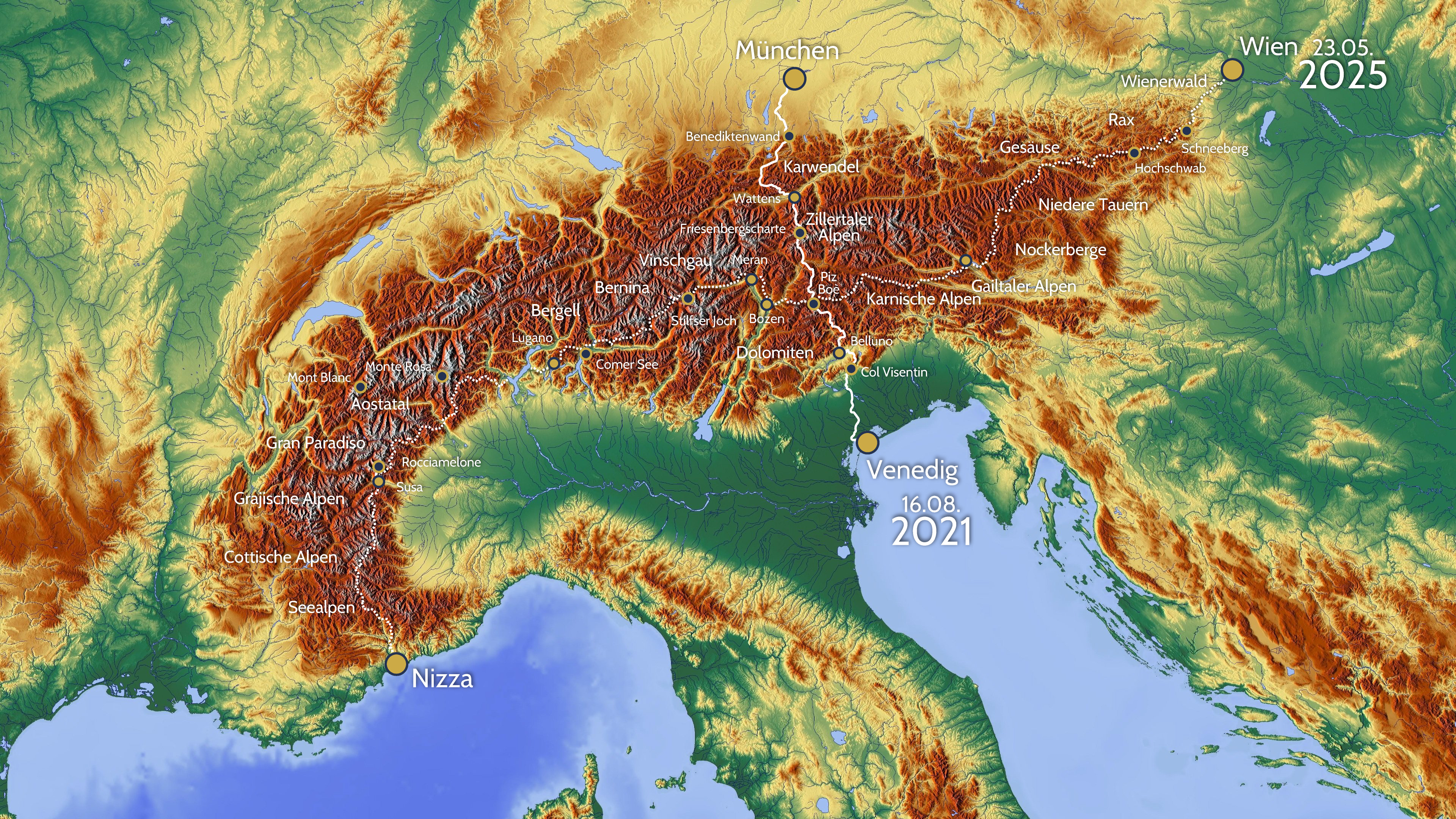 Fernwanderungen Von Nord nach Süd & Ost nach West München-Venedig Wien-Nizza Klicke auf die Karte, um sie zu vergrößern. Teilen mit: Auf X teilen (Wird in neuem Fenster geöffnet) X Auf Facebook teilen (Wird in neuem Fenster geöffnet) Facebook Mehr Einen Link per E-Mail an einen Freund senden (Wird in neuem Fenster geöffnet) E-Mail Auf WhatsApp teilen (Wird in neuem Fenster geöffnet) WhatsApp Gefällt mir Wird geladen …